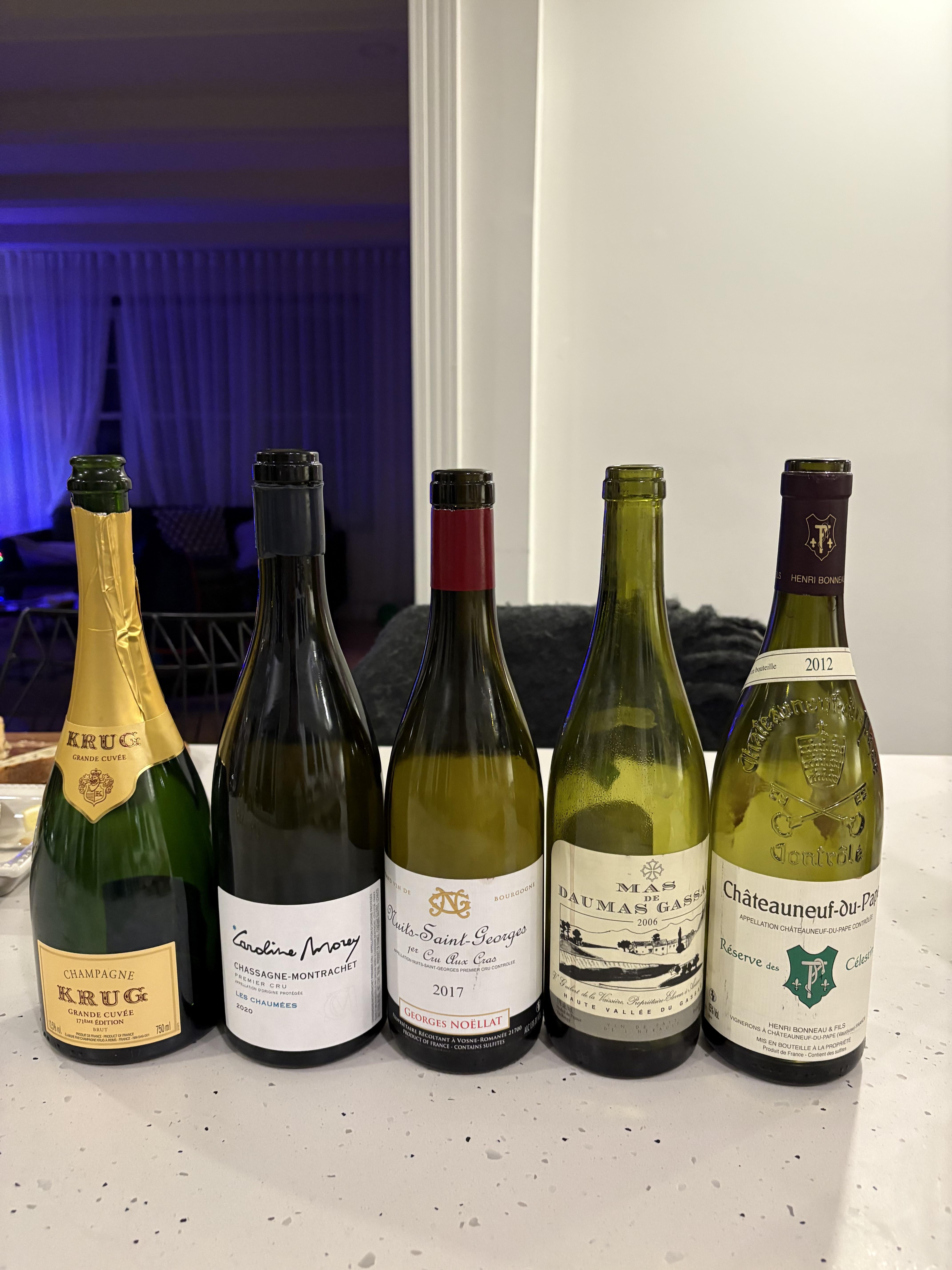 Krug: First time drinking krug, latest release. It was obviously tight and young so we decanted it for 30 minute. Yeasty and nutty on the nose, on the nose you might think this will be a heavy champagne but the palate is incredibly well balanced. I can see the hype but a little too expensive in my book.