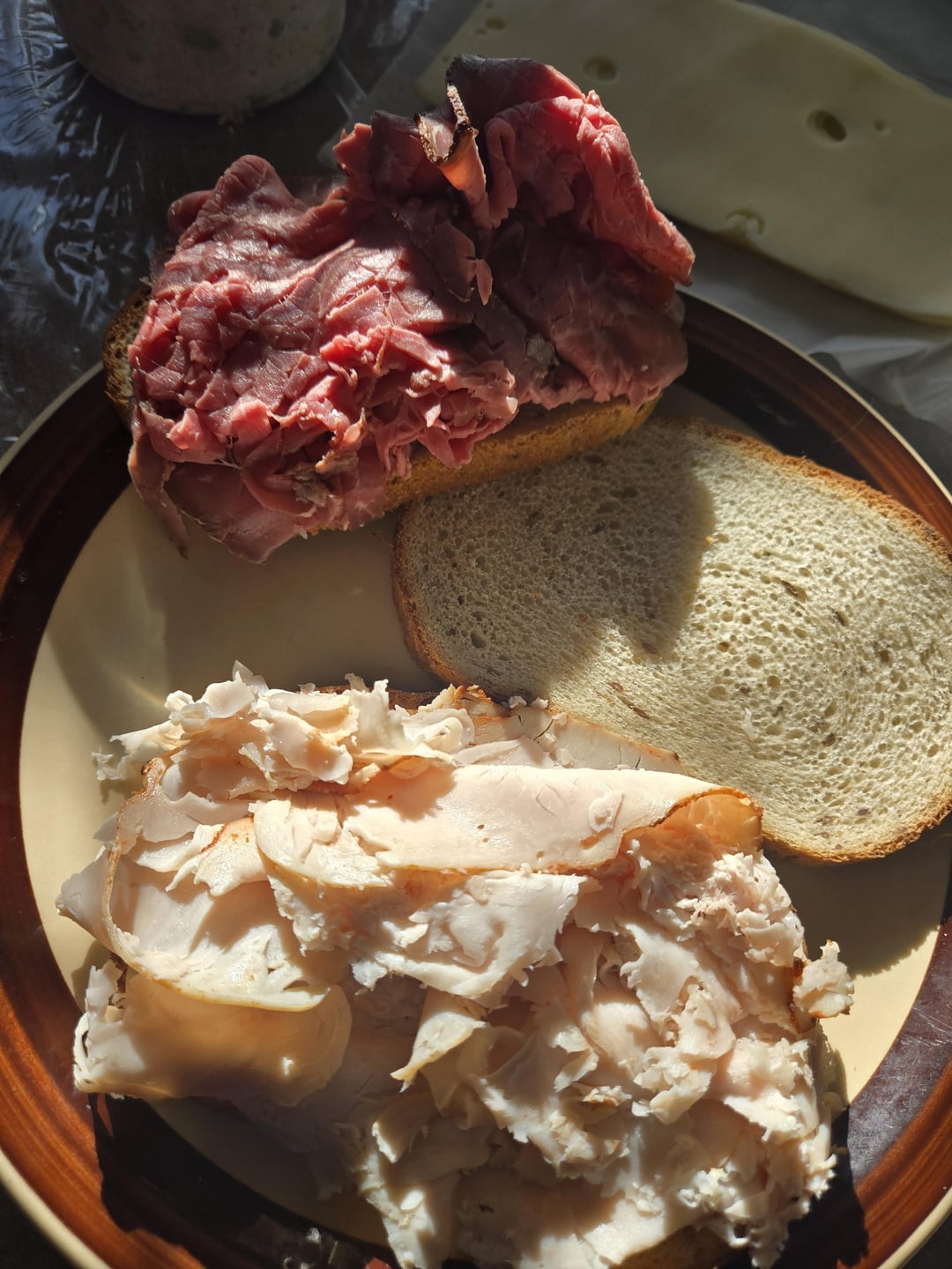 Turkey and roast beef and Swiss today for lunch