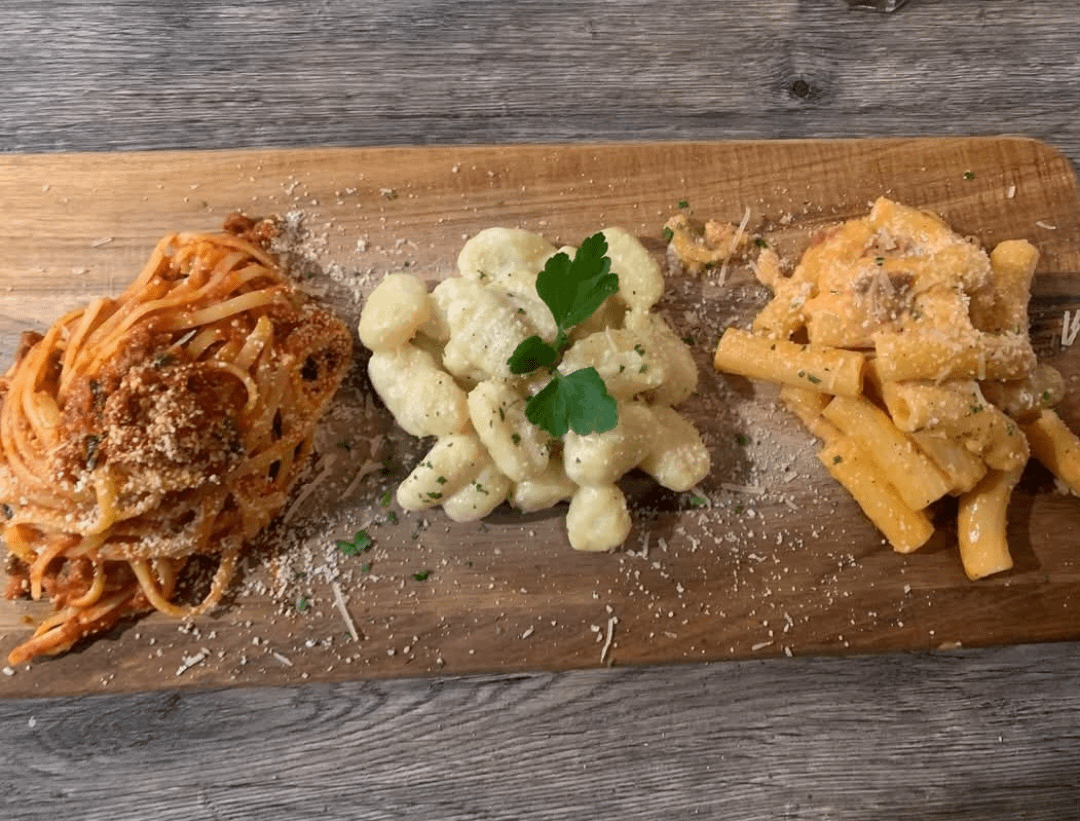 fa-jita 1 year ago Love me a trio of pasta. You generally get a red sauce, a white sauce and a pesto. Yum