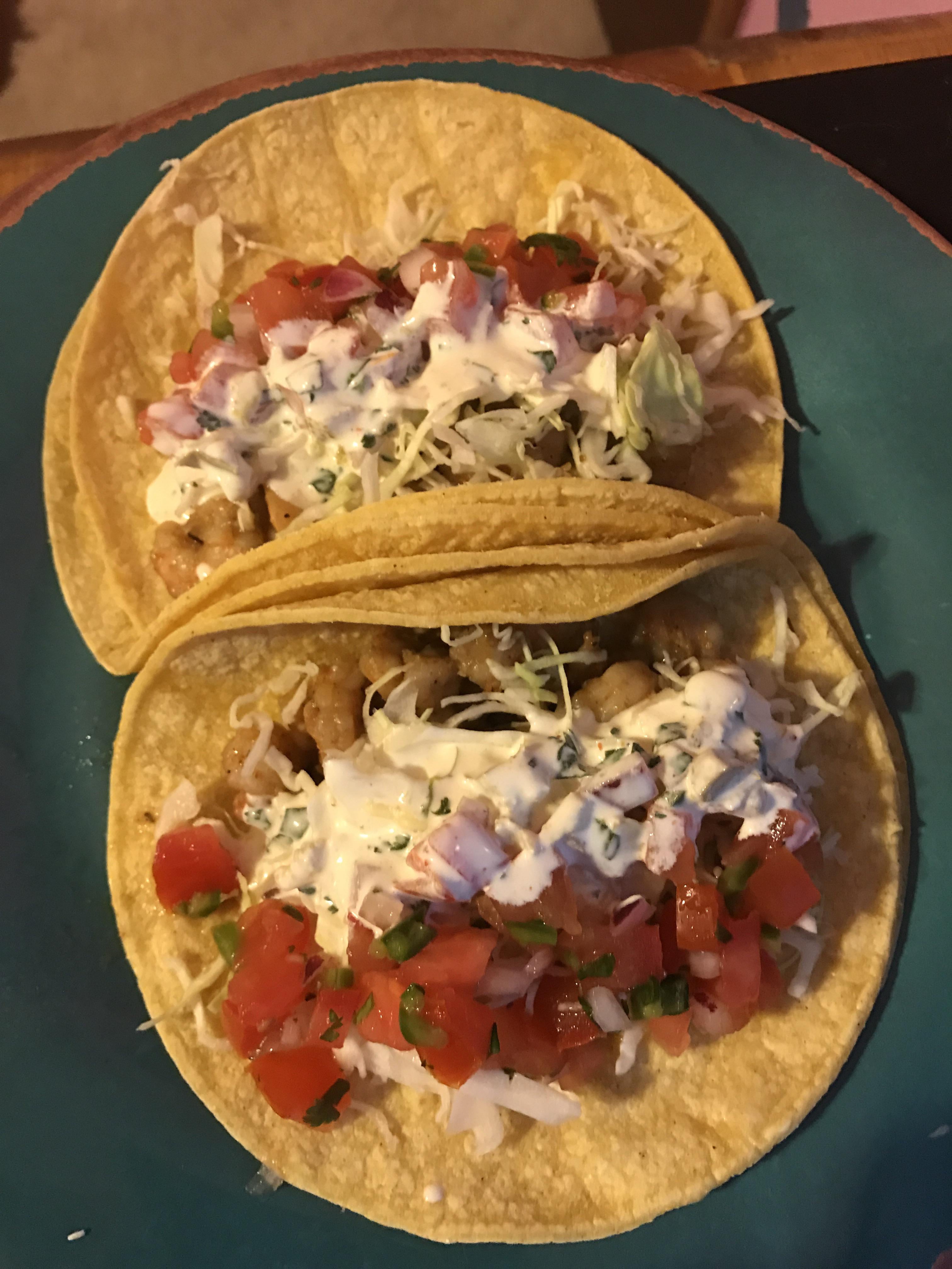 They look fire! I love shrimp tacos. What kind of cream/sauce you got on there?
