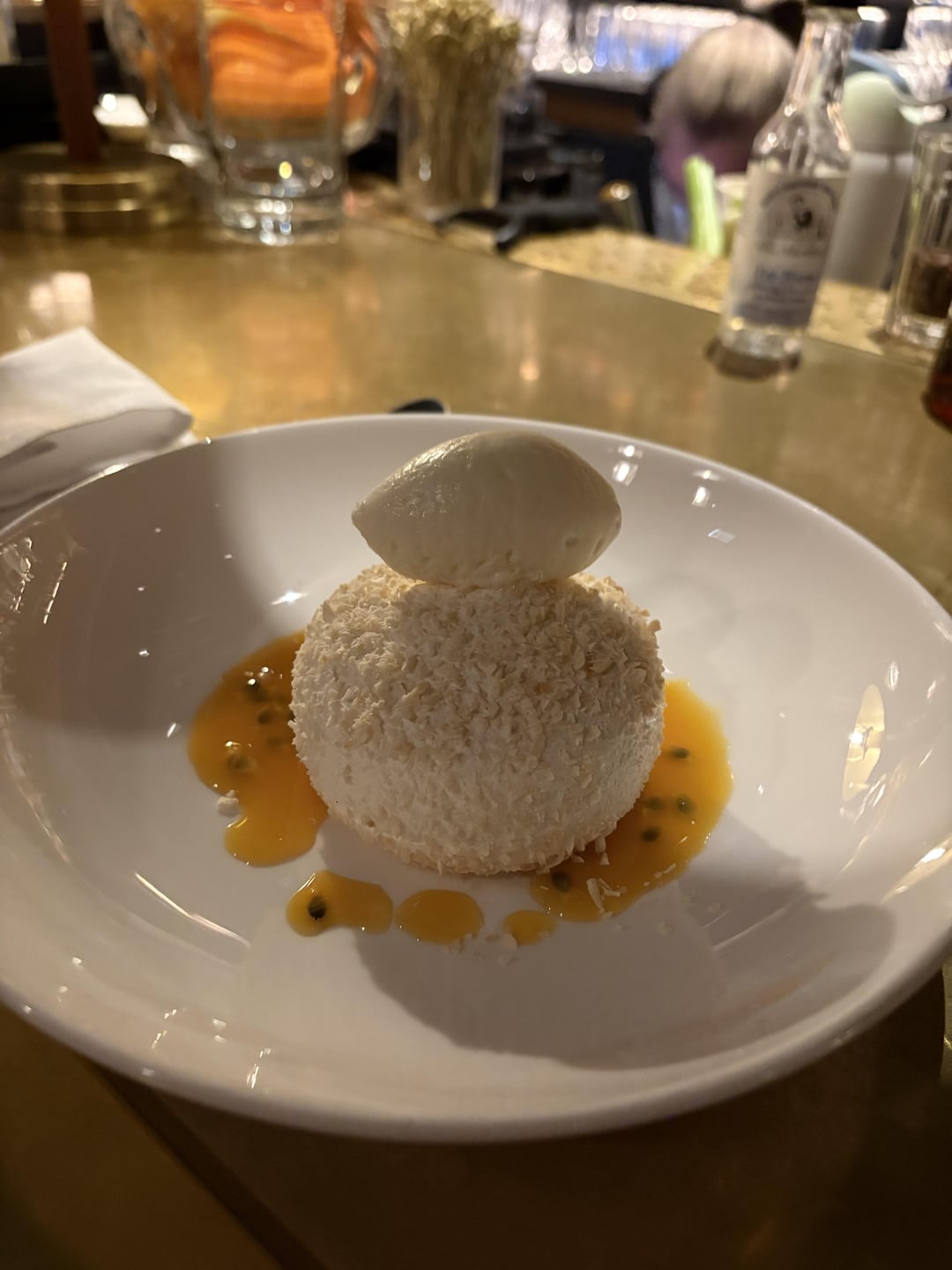 For dessert I got the coconut passion fruit pavlova, which was an ideal balance to my starchy meal. I’m not really into chocolate or toffee pudding and this was the only lighter/fruity dessert. I had to stop myself from licking the plate.