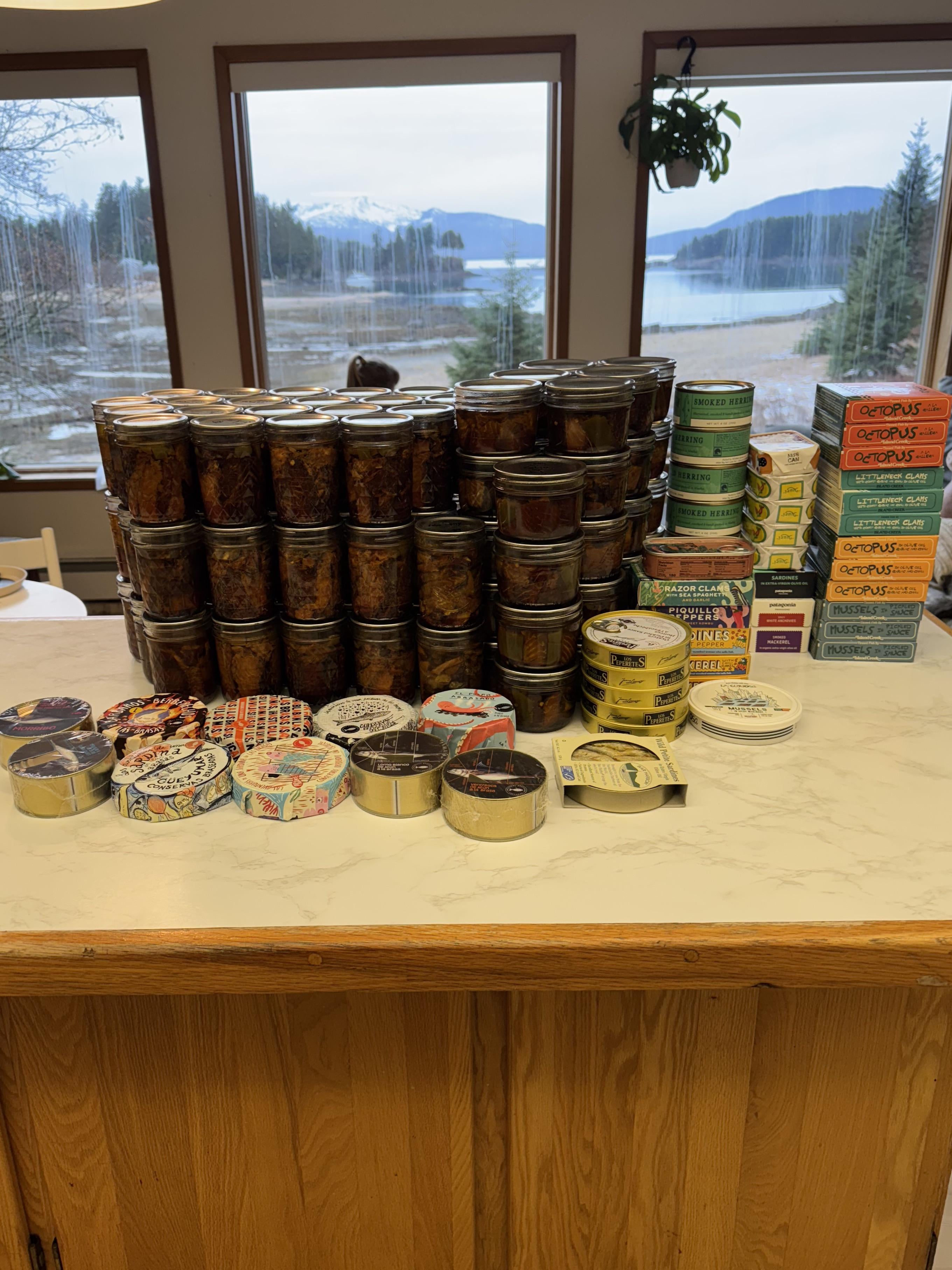 The harvest, preserved in jars as food-store for the harsh season up ahead. The biting wind may snap at you with its icy breath and the trees wilt green life from the blue sapping cold; but you’ll be safe inside the refuge of your warm home, nibbling on canned salmon. You’ll survive the winter, this time.
