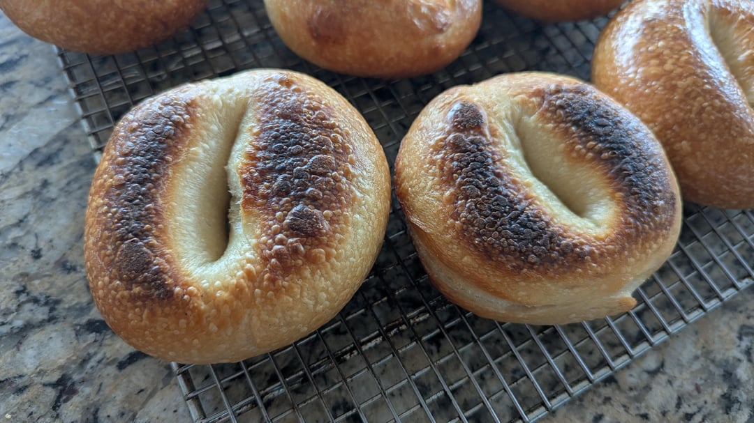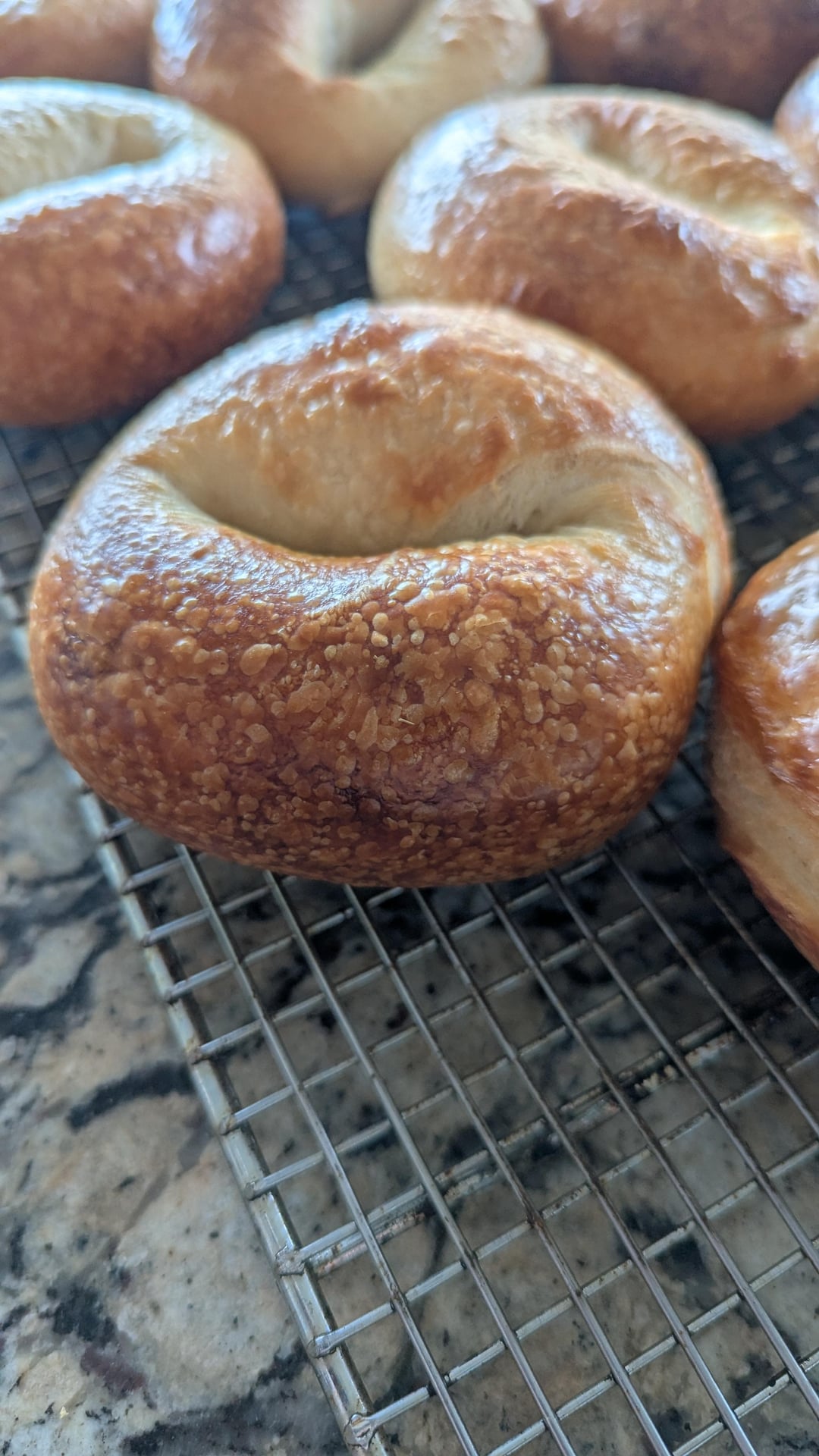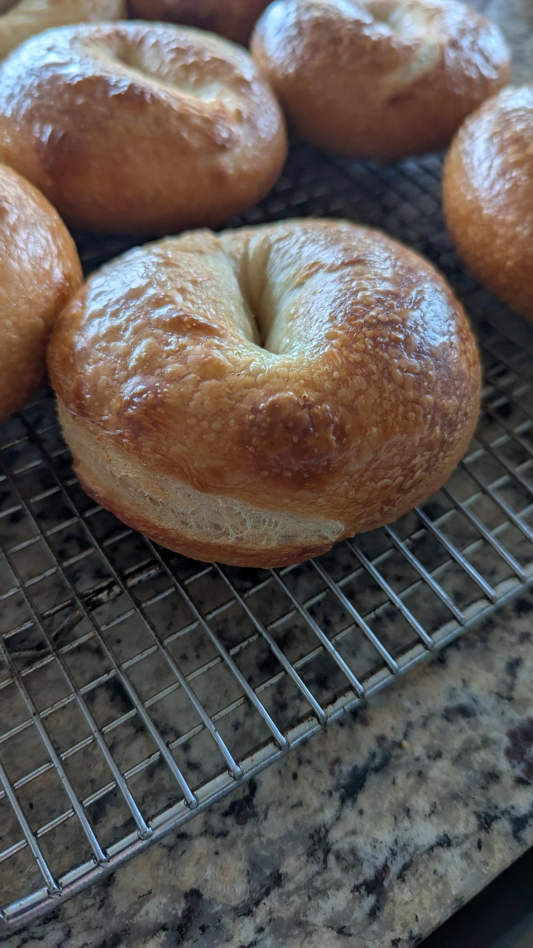 You got that swole hole shut thing goin, which is always what I look for in a bagel. Maaaaybe want a little less char on the bottom. Absolutely gorgeous.