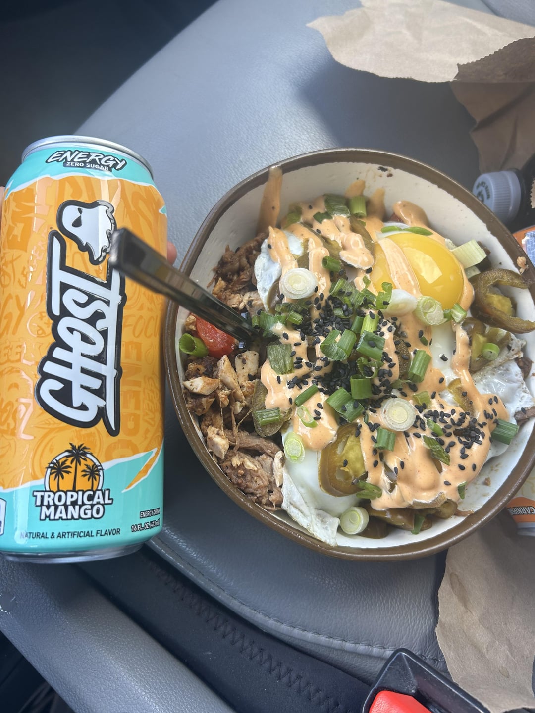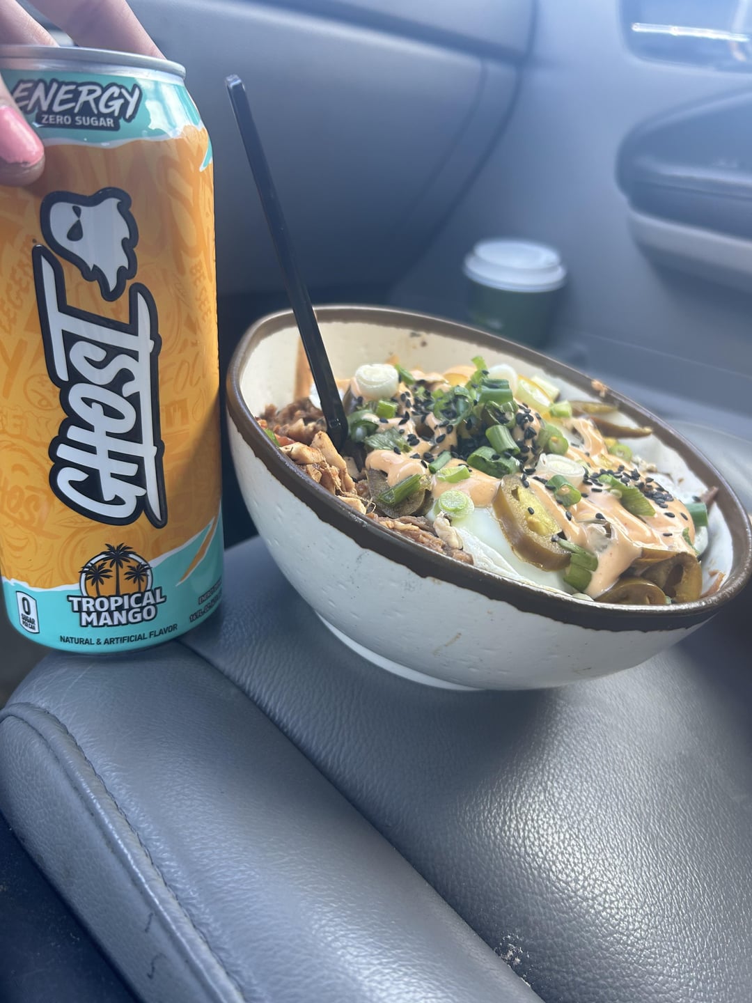 I had this with pickled jalapeños and grilled chicken added. I had 5 birthday cake protein balls (sprinkle ones.) Compared it to energy drink for size reference
