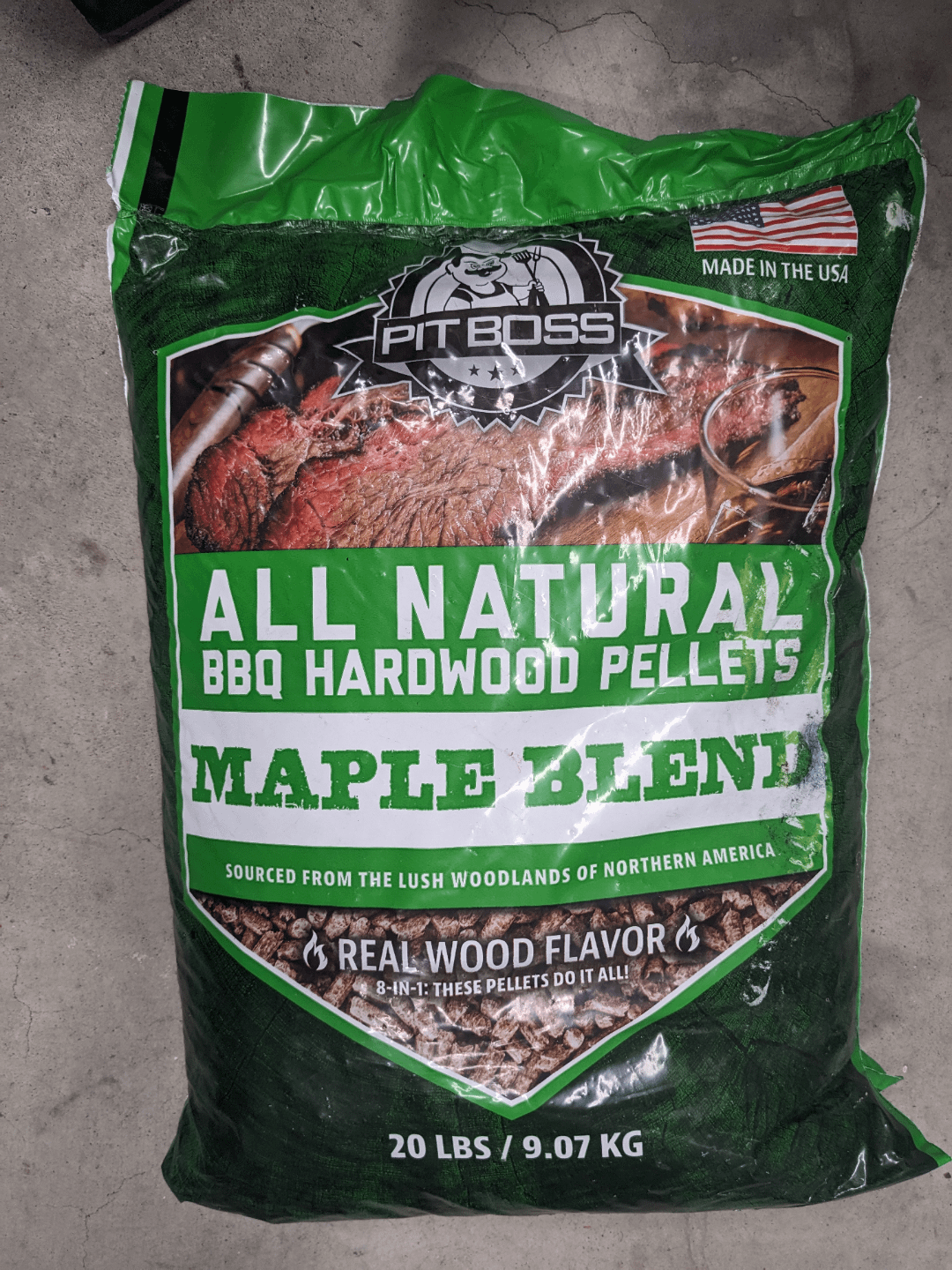 1. Score! Pit Boss are middle-of-the-road pellets; can’t speak to the Maple specifically, but I’ve cooked plenty of good food on PB pellets.