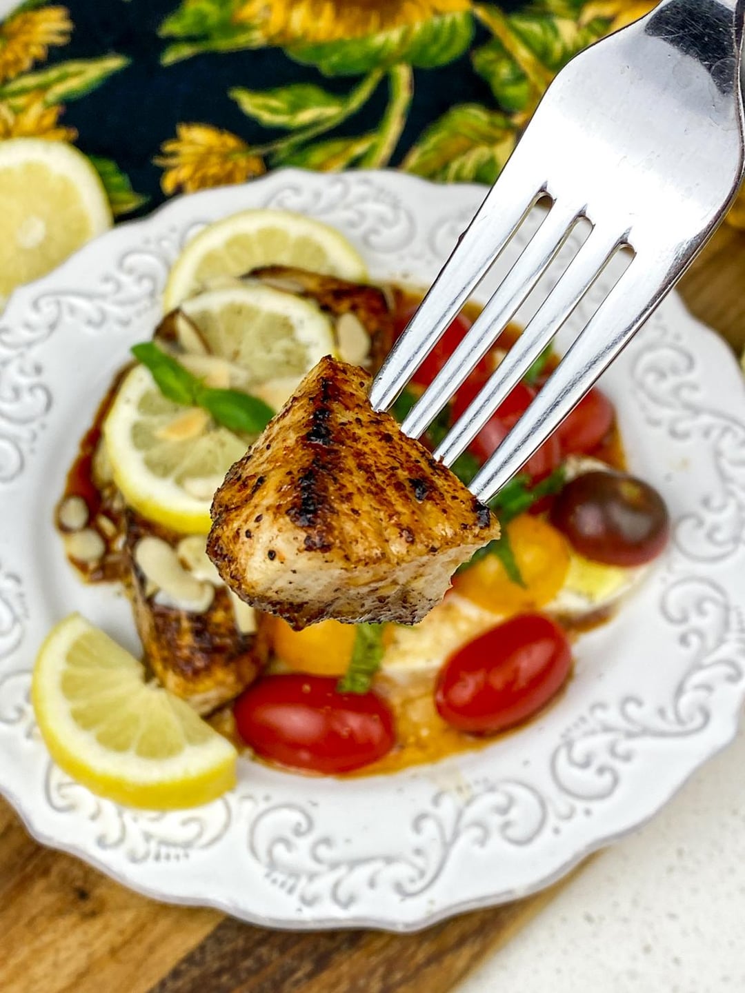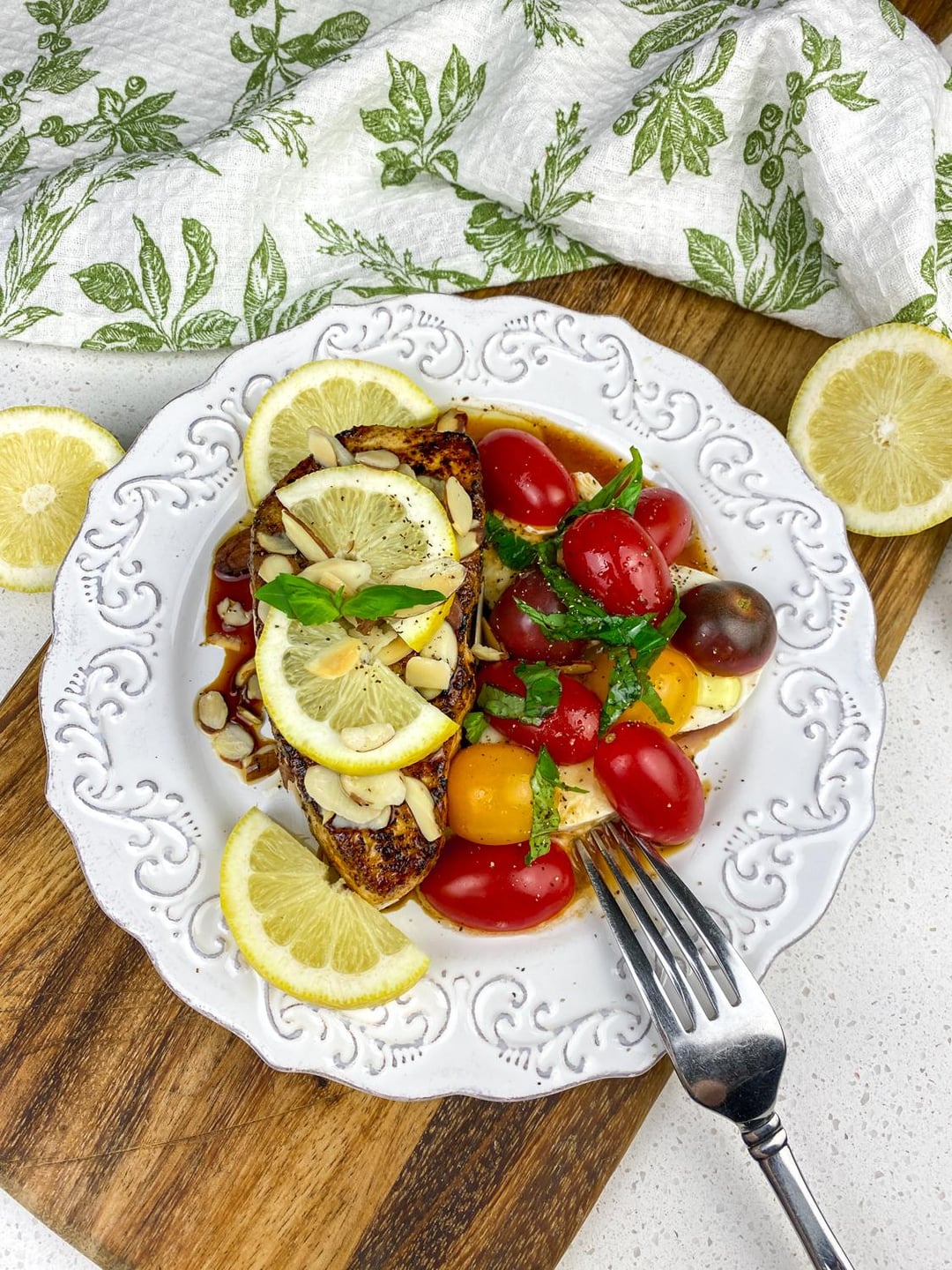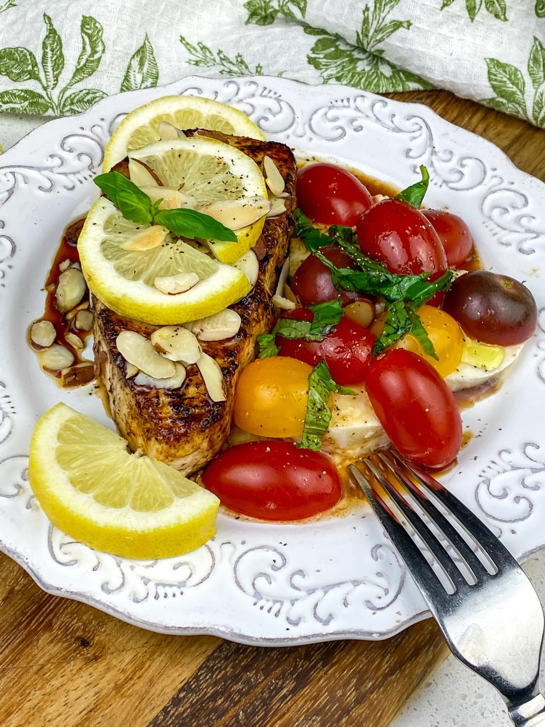 Seared White Fish with Caprese Salad
