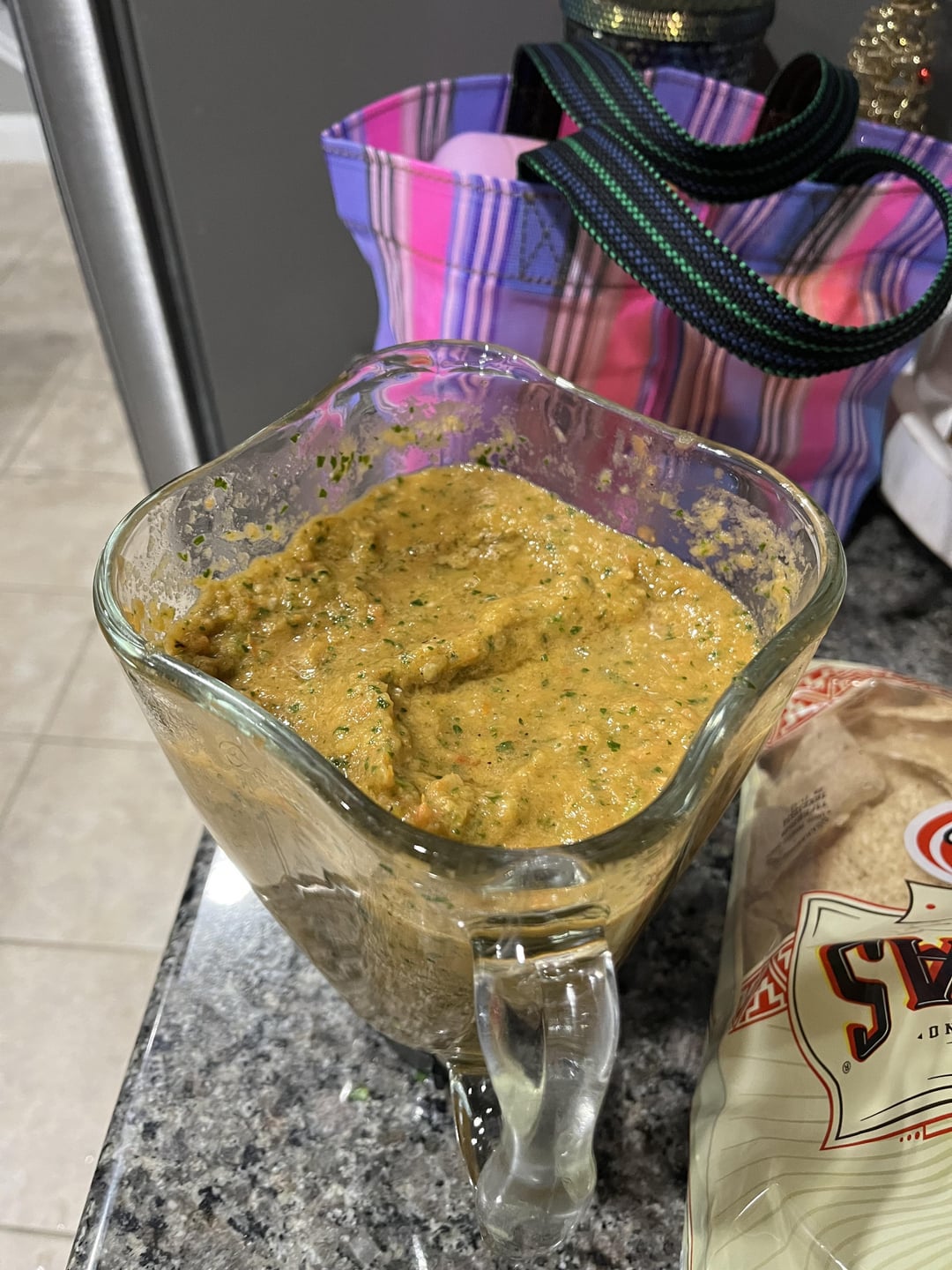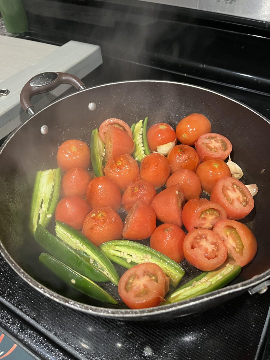 i wanted it to be more red 😅 the store i went to only had jalapenos so i used 4 and kept the seeds. id say it's medium heat. i also added cilantro and lime juice. how can i make the color actually red though?