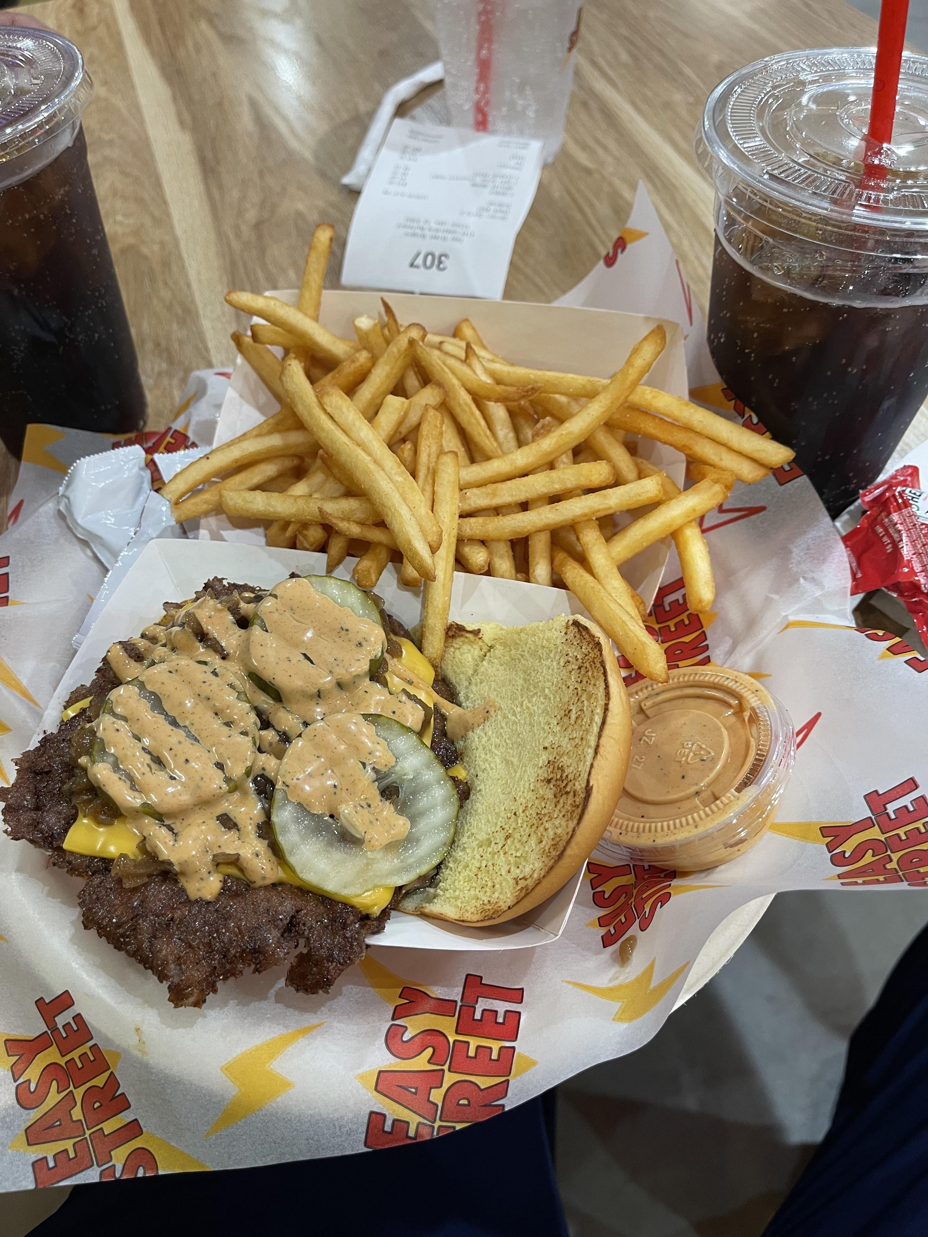 Compared to other smash burger spots in the LA area a double at easy street is $10, $12.50 at For the win, and $14 at burger she wrote. So i feel easy street is pretty good for its price and size.