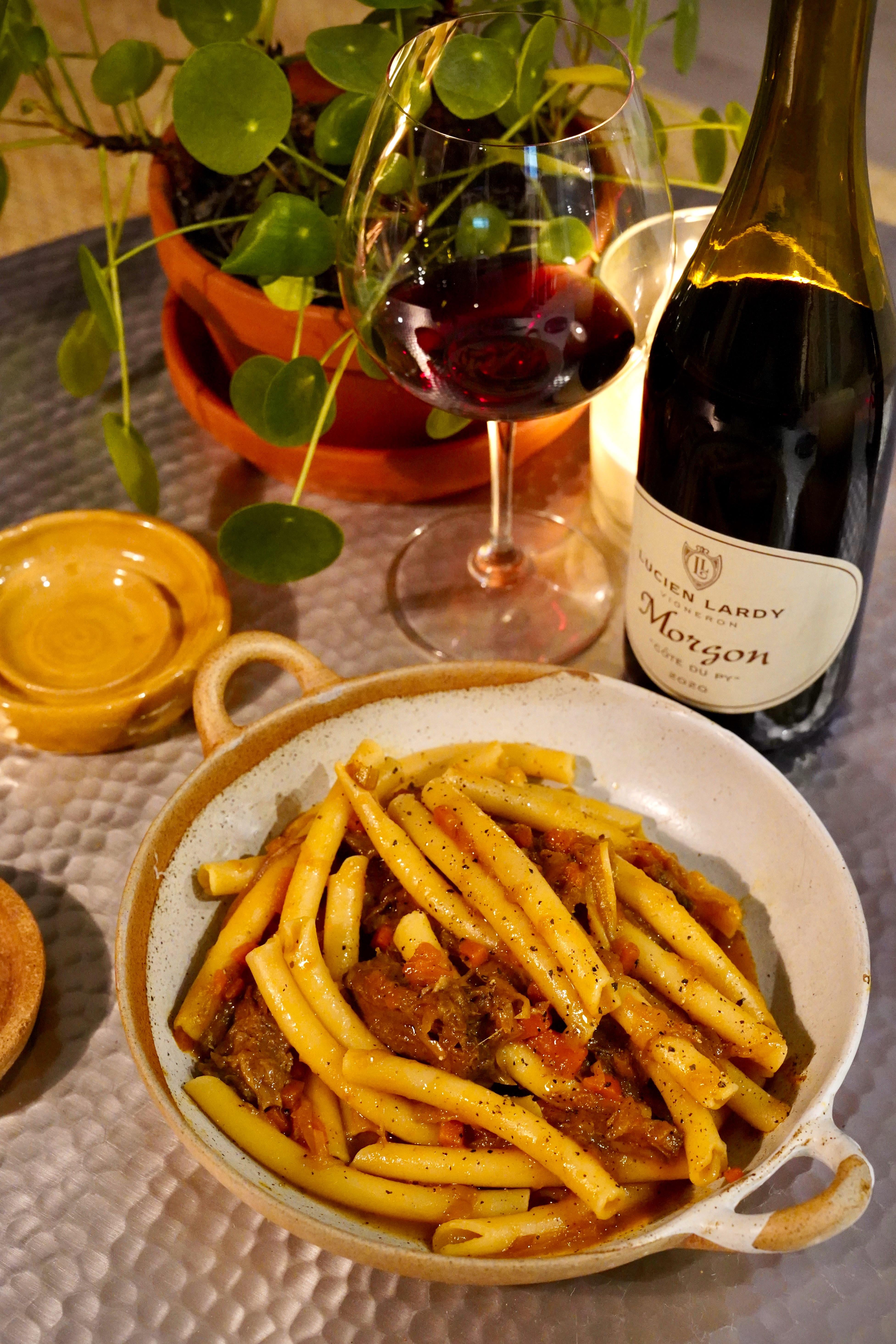 Served with Morgon, because it’s Beaujolais Day and I don’t have any suitable Italian red in the house currently.