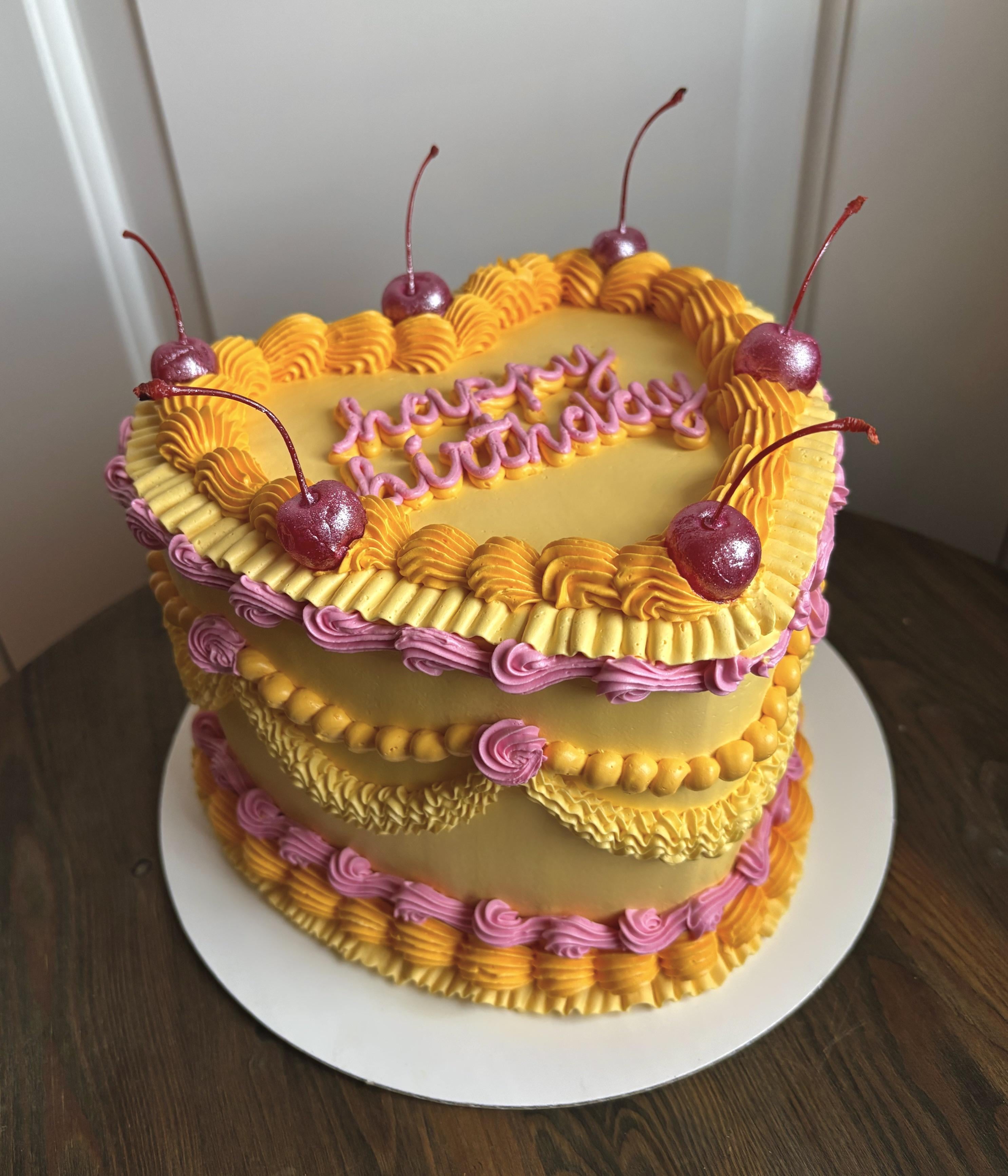 Downtown_Fill_6493 10 months ago I wouldn’t have guessed that color combination would look so good!! The piping is gorgeous, & the pink cherries on top, so dang cute 💖