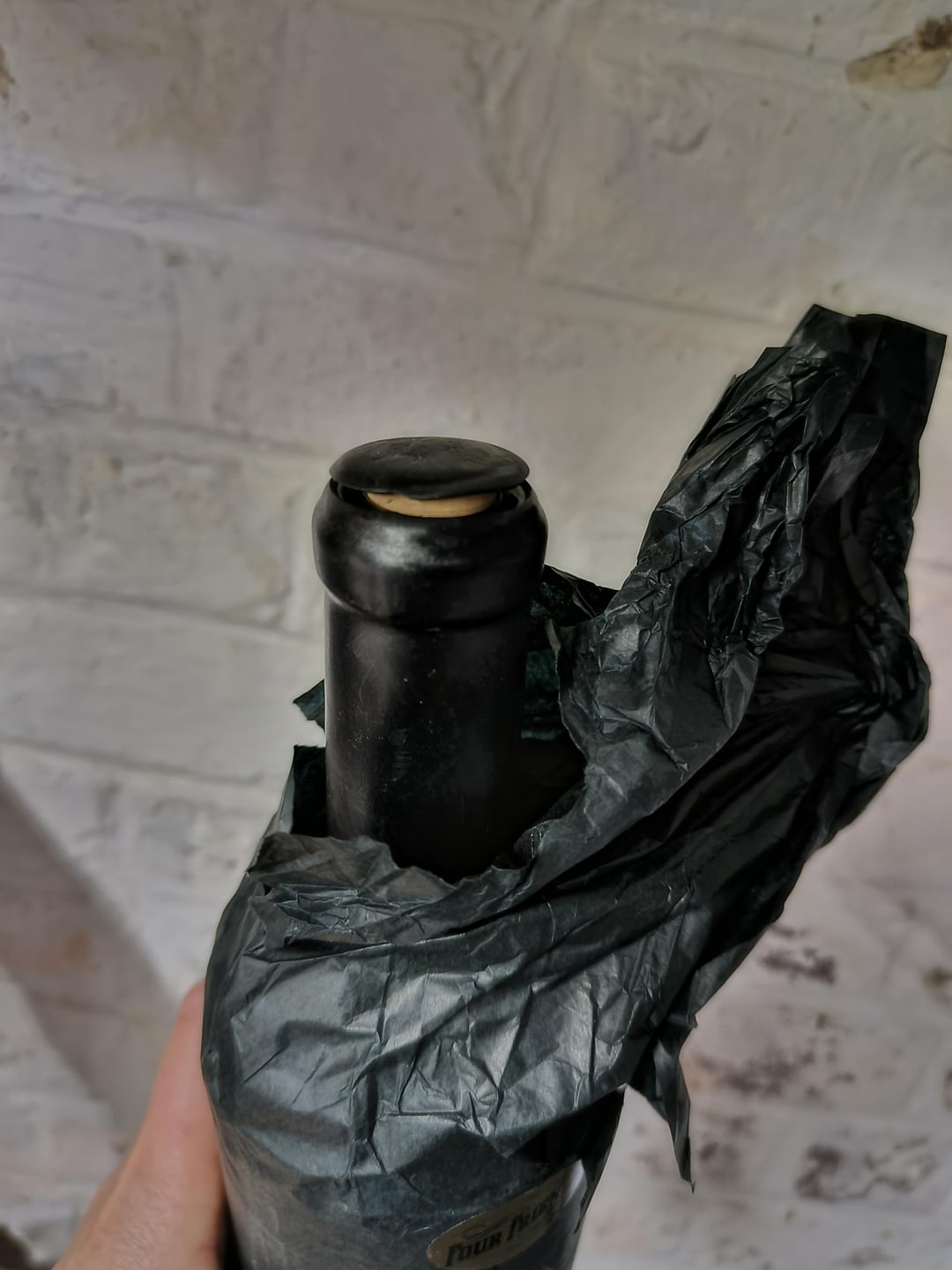 This bottle was received as a gift from a friend but after removing the black paper I'm not sure if what I see here will have affected the quality of the wine? The black seal is wax. Thx for your thoughts