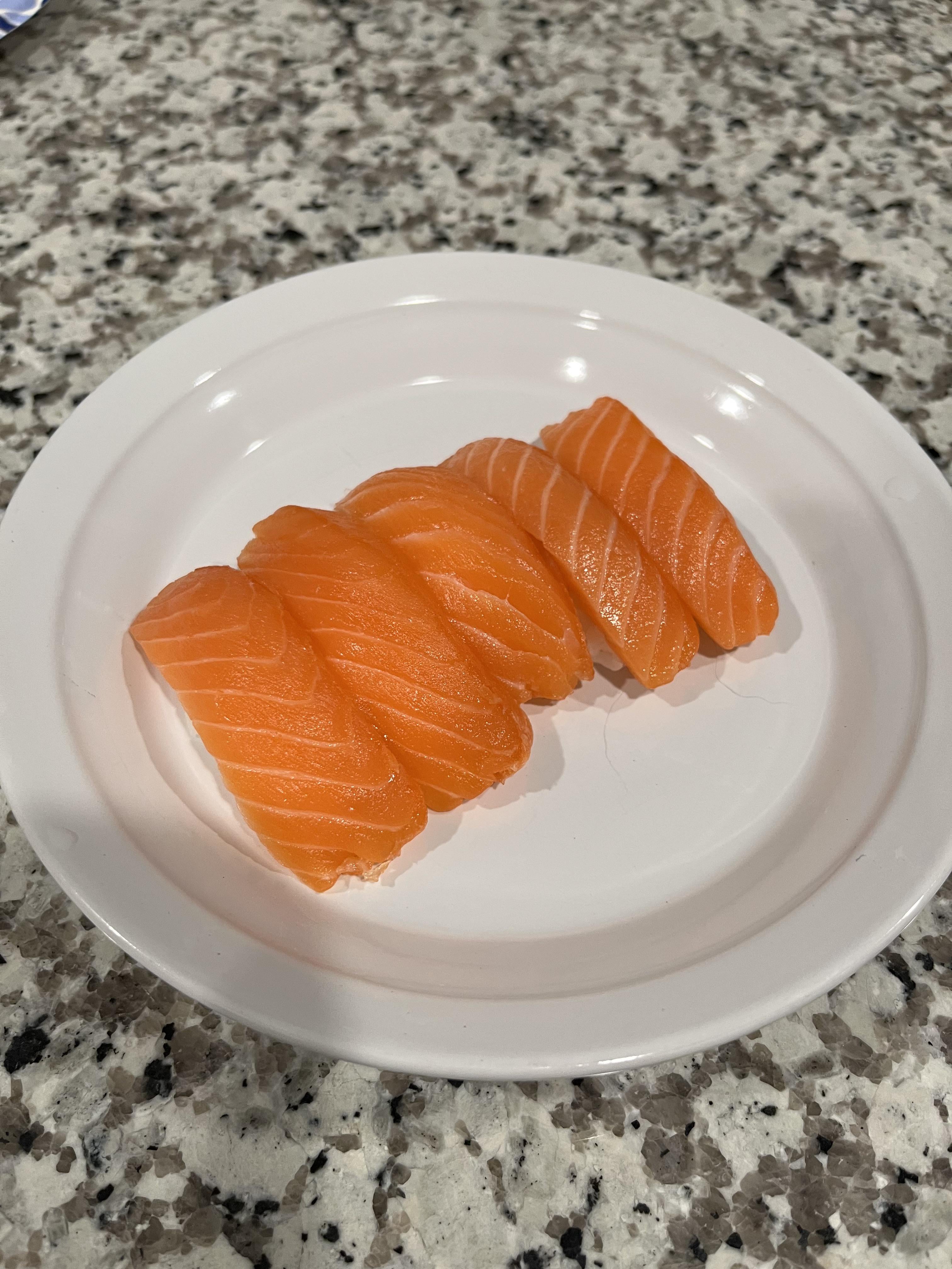Looks good! Idk if it’s the angle of the photo but I guess it’s just more so having the slices of salmon more even next time. Either way I would 100% eat it!