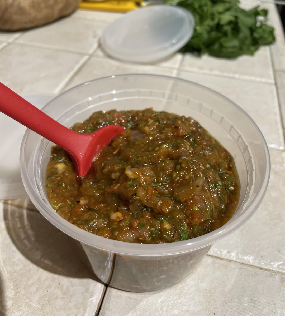 i had been using 1 serrano and 2 jalapeños the last 4-5 times i made salsa & decided to just use jalapeño this time. if i’m being honest this salsa has fixed all my problems and i’m firing my therapist in the morning 😉