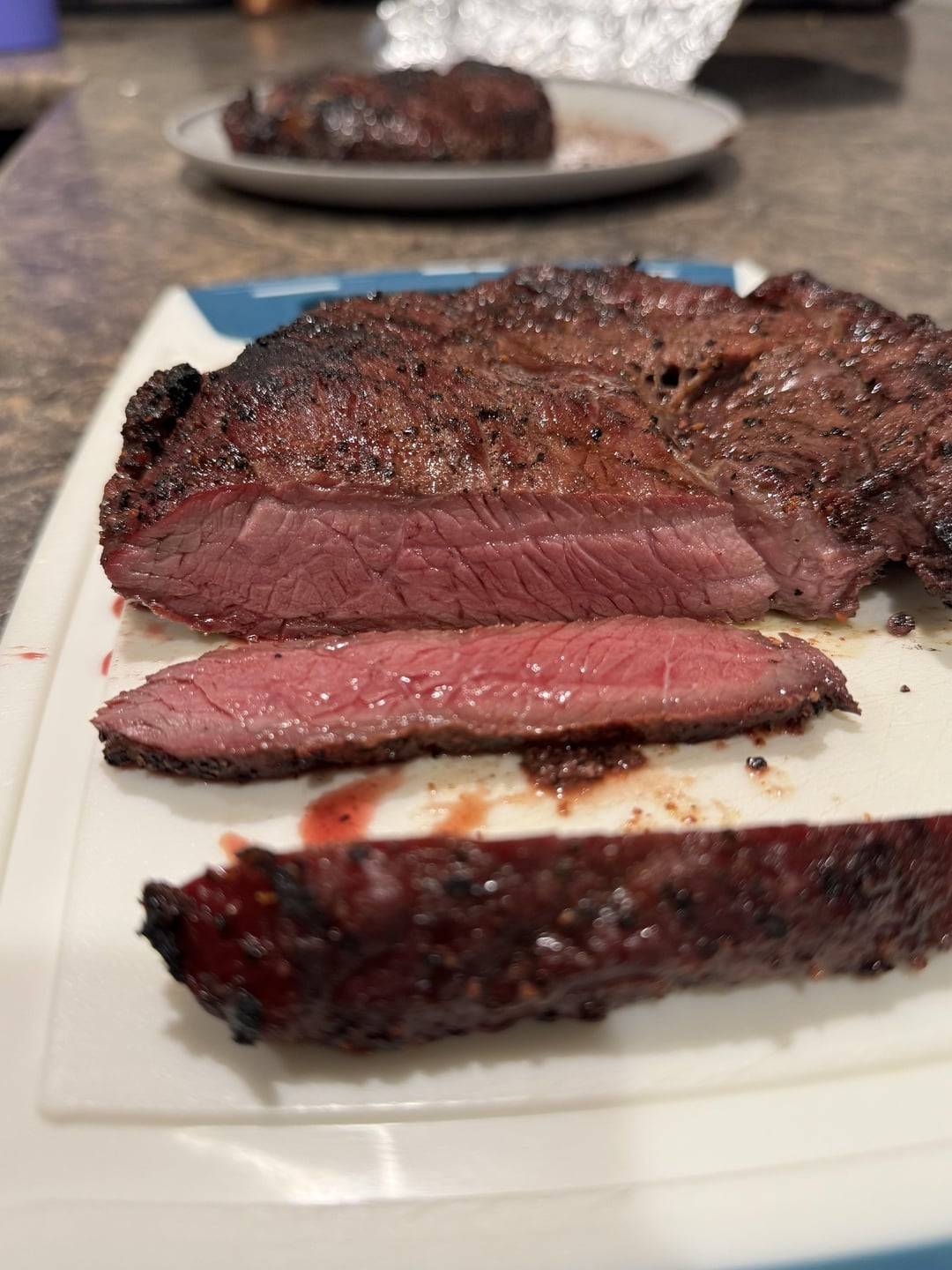 Never was able to own a grill or smoker till now and it turned out great! Reverse seared cheap sirloins on the Weber and was able to hold the temp at 250°F for 40 min almost by sheer luck. Put on another full chimney and pulled at 125° to rest till it reached 135 internal. Looks more rare than it was.