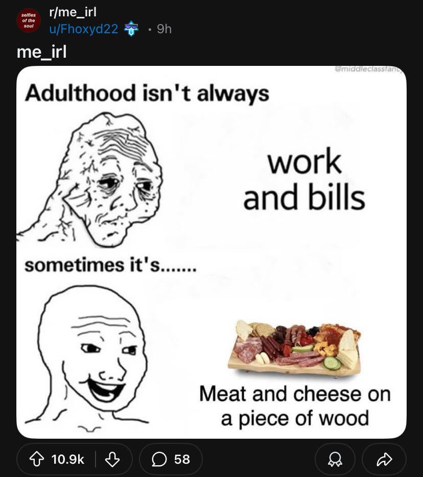 On a rampby kkk12ghfanboy 3 Comments CaddyShsckles 10 months ago That meat and cheese on a wooden board is usually followed with a ‘bill’ coaxsempai 10 months ago With wine… the most important ingredient noobyeclipse 10 months ago with a sandoWrite A CommentYou must be logged in to post a comment.