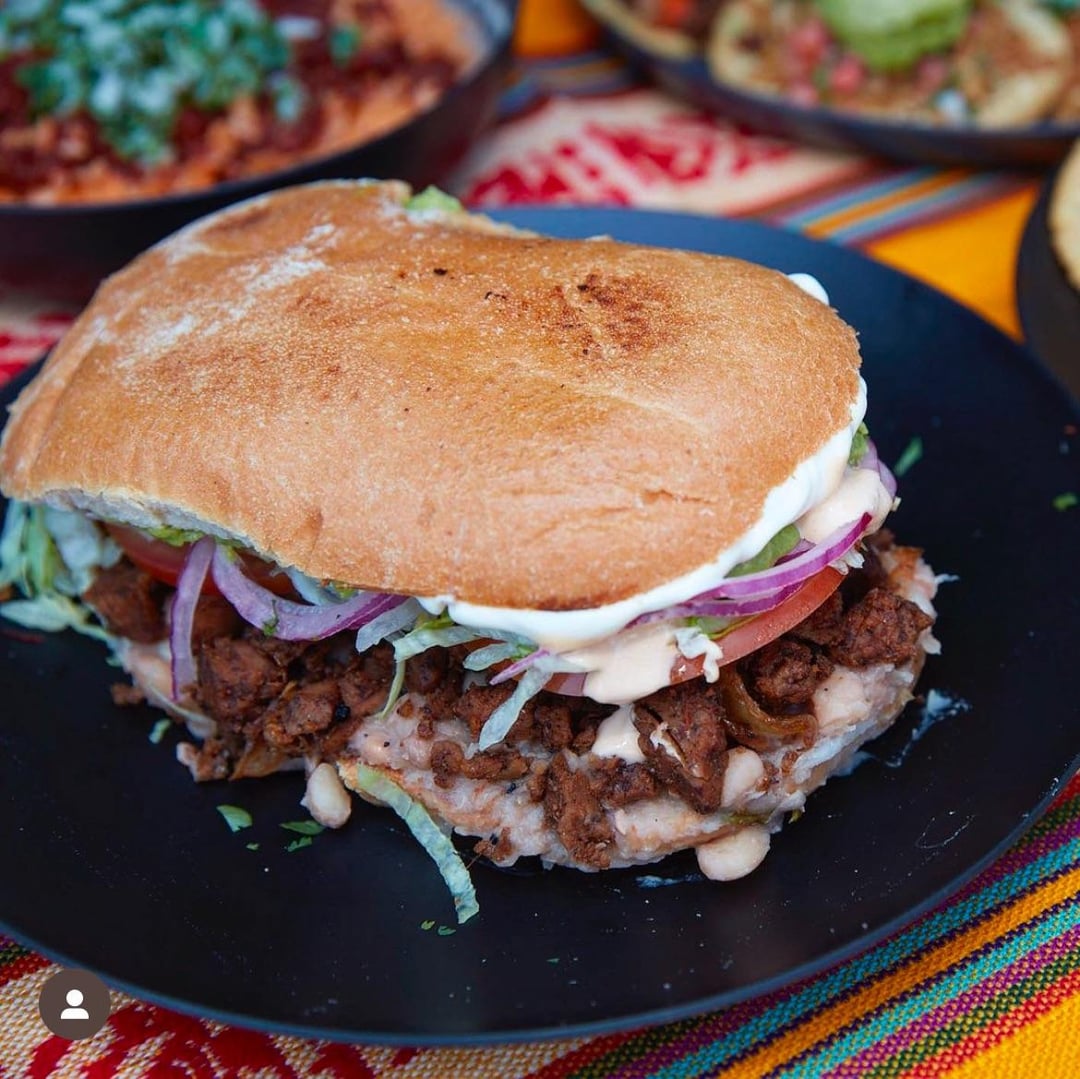 i got it from Cena Vegan in LA. its a giant telera bread with vegan carne asada, guac, refried beans, cashew cream, vegan mayo, onions, and lettuce. i would really appreciate any estimates!