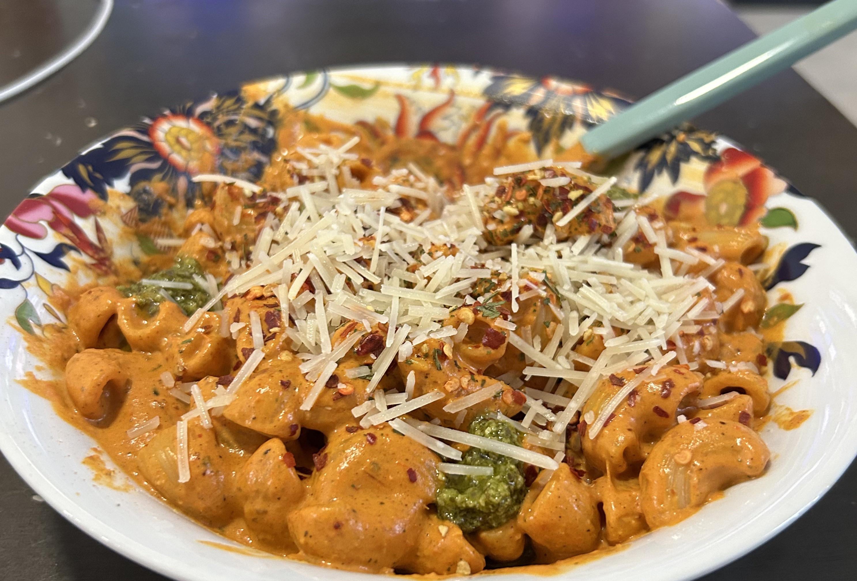 Blended some roasted red pepper, tomato, olive oil and Boursin cheese to make the sauce. Added some pepper flakes, Parmesan and pesto to finish it off. It was sooooo good. Husband licked the sauce off the pan. This was a hit!by Katniss_Everdeen1 1 Comment Twinkles66 10 months ago Love that so muchWrite A CommentYou must be logged in to post a comment.