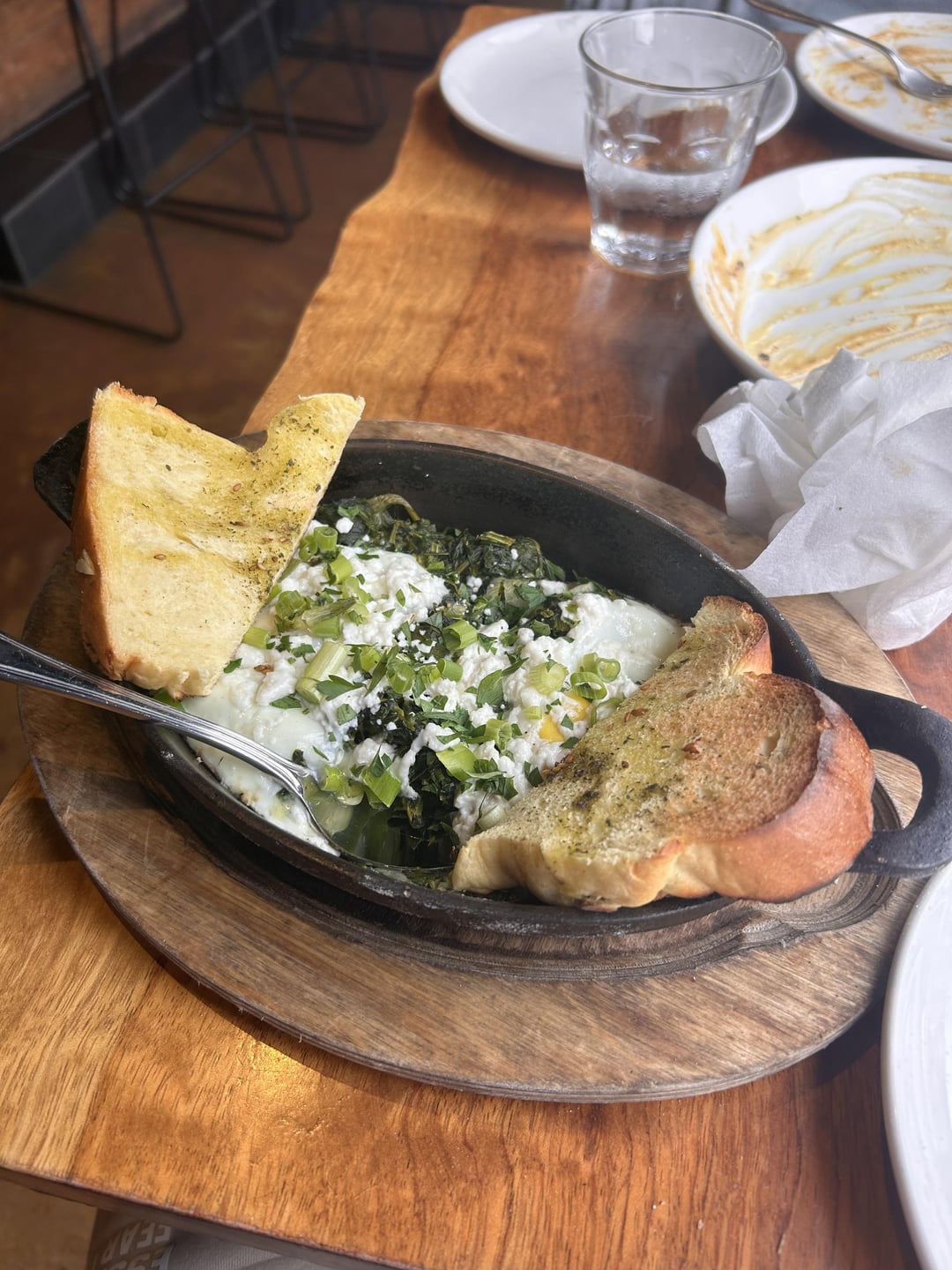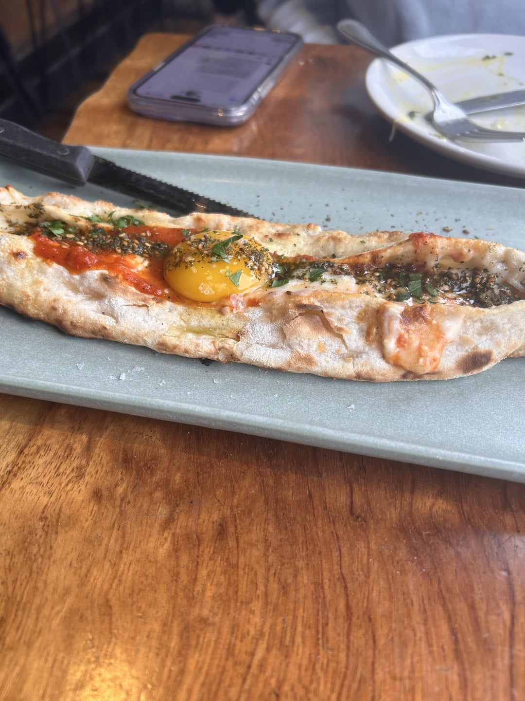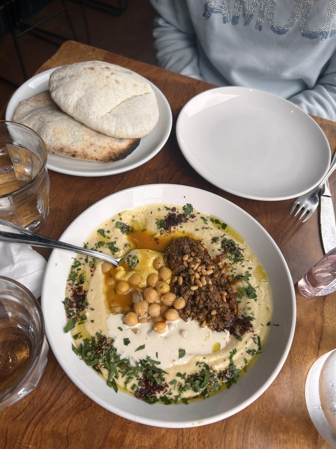 We were in the area after seeing some friends in the morning and decided to stop by since we saw this Michelin rated restaurant was near us. They were doing their brunch menu so we ordered what our waitress recommended. Khachapuri was hot and amazing, loved that egg yolk and the two types of sauces. Came out hot and fresh. The highlight was definitely the hummus, it was so creamy and the best hummus I have ever had. The cake slice was OUTSTANDING as well, this was a while ago so I’m forgetting the names of everything but it was one of my favorite slices ever as well. I need to go back to try dinner and get that cake again. I think about it at least once a week.