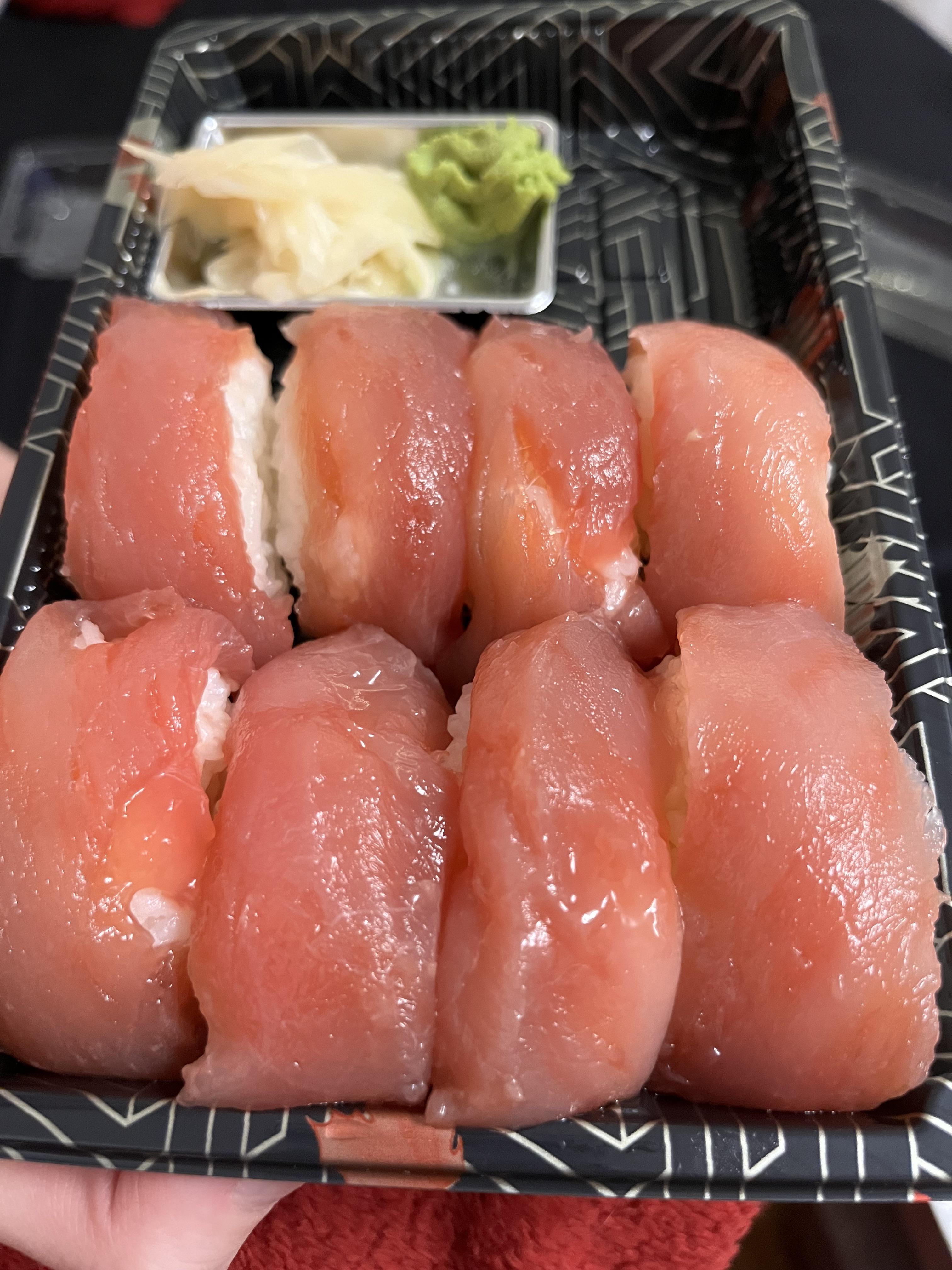 I eat some funny looking cuts on albertsons sushi on the regular n ain’t had a problem. But vinegar smell and slimey texture? Nah