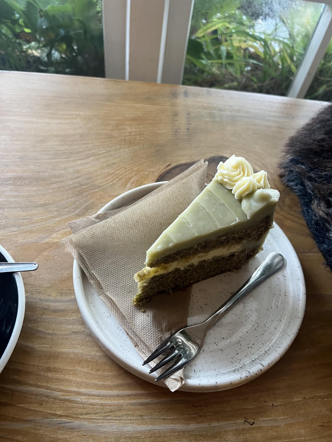 cals in this slice of white chocolate and matcha cake? two pics for size reference, not a huge slice but the icing was quite thick!