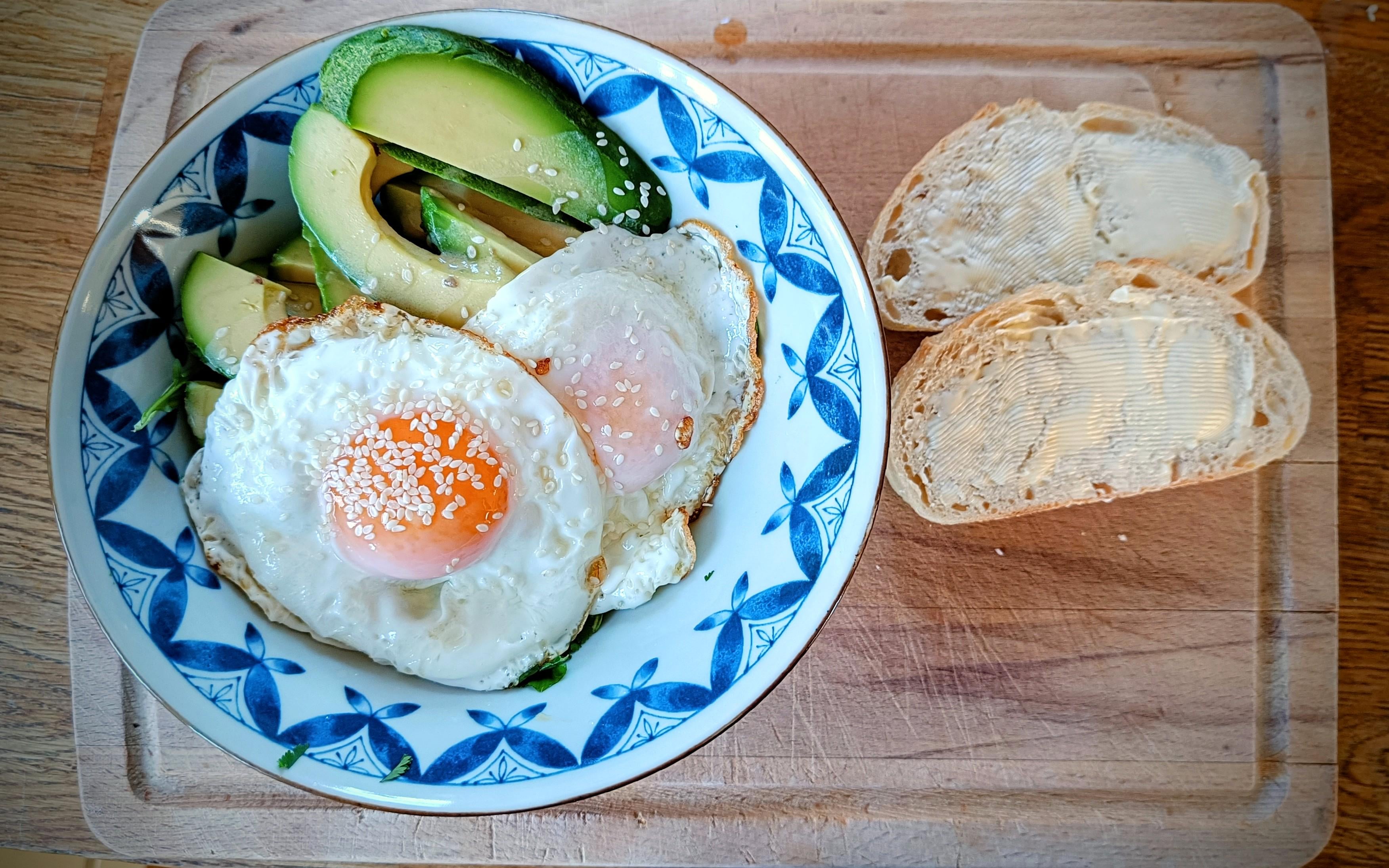 Directly inspired by this group (thank you OOP!). Under the eggs and avocado is a rocket and coriander salad with sweet umami dressing. With buttered sourdough and a cup of tea.