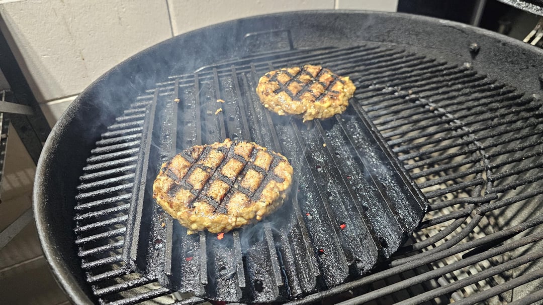 My usual, 1lb ground chuck 80/20, 1 l lb ground pork, 1 packet each of Liptons Beefy Onion soup mix, and Golden Onion soup mix, a huge tbsp of dehydrated onion, 2 small eggs, and I change out either War Chester Site sauce, A1 Sweet Hickory, toss it into a mixer on low, just enough to gently combine everything without making it into paste….divide it all into 8oz burgers or so, I coat each side with vegetable oil, heat up the grill and GrillGrates to about 600°f…cook 2 min, rotate 90° for another 2 min, flip, and repeat…they seem to come out perfect everytime, you can adjust your time for your particular finish