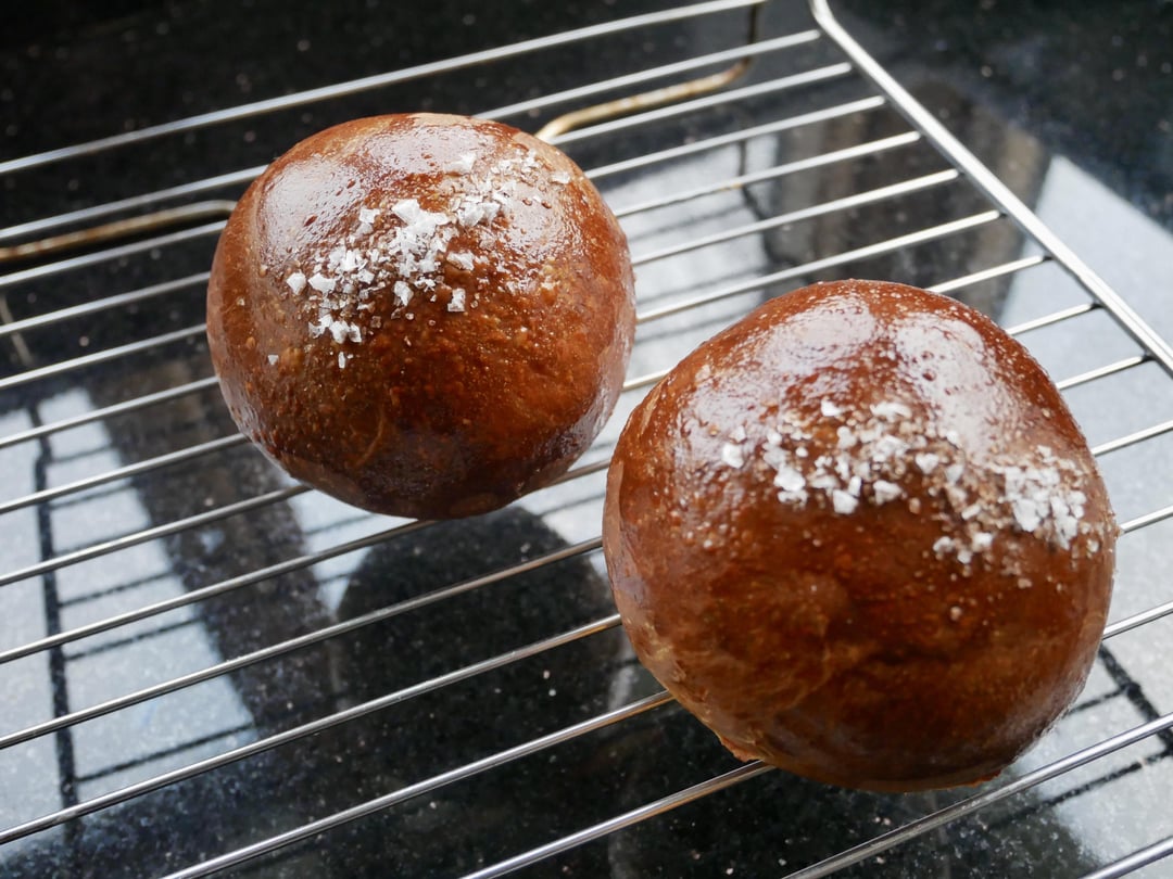 Stand mixer couldn’t handle it at the end so I slapped and folded a bit to get it to where I wanted. Just did 6 100g balls into my loaf tin and baked for like 30 minutes maybe. I’m not really sure, I was doing it all by eye and nearly forgot about them proofing. Used the left over bits for a burger bun!
