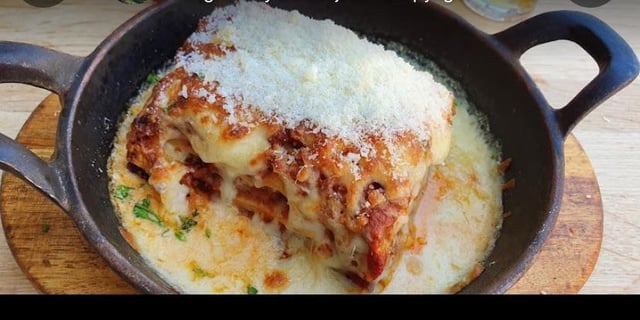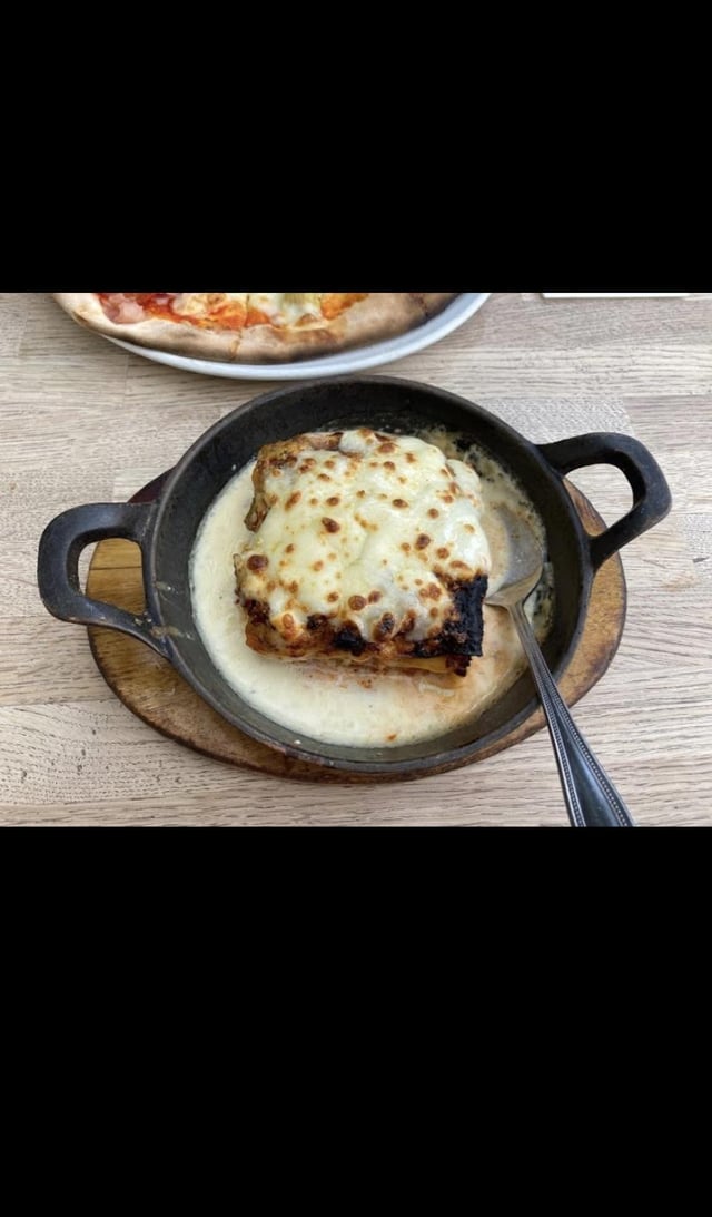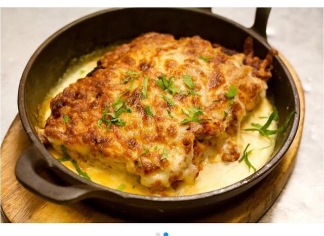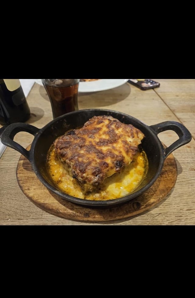 Description from menu: Traditional Layers of Pasta with Bechamel, Tomato Sauce in Minced Beef. Topped with Mozzarella Baked in the Oven