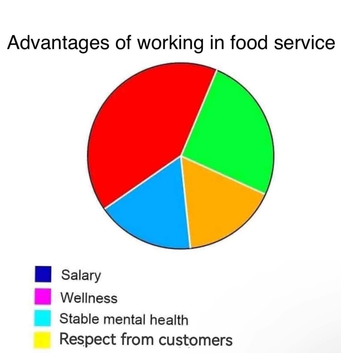 I get the joke but now I’m left struggling to fill in 4 positive things about food service work to still make the graph make sense.