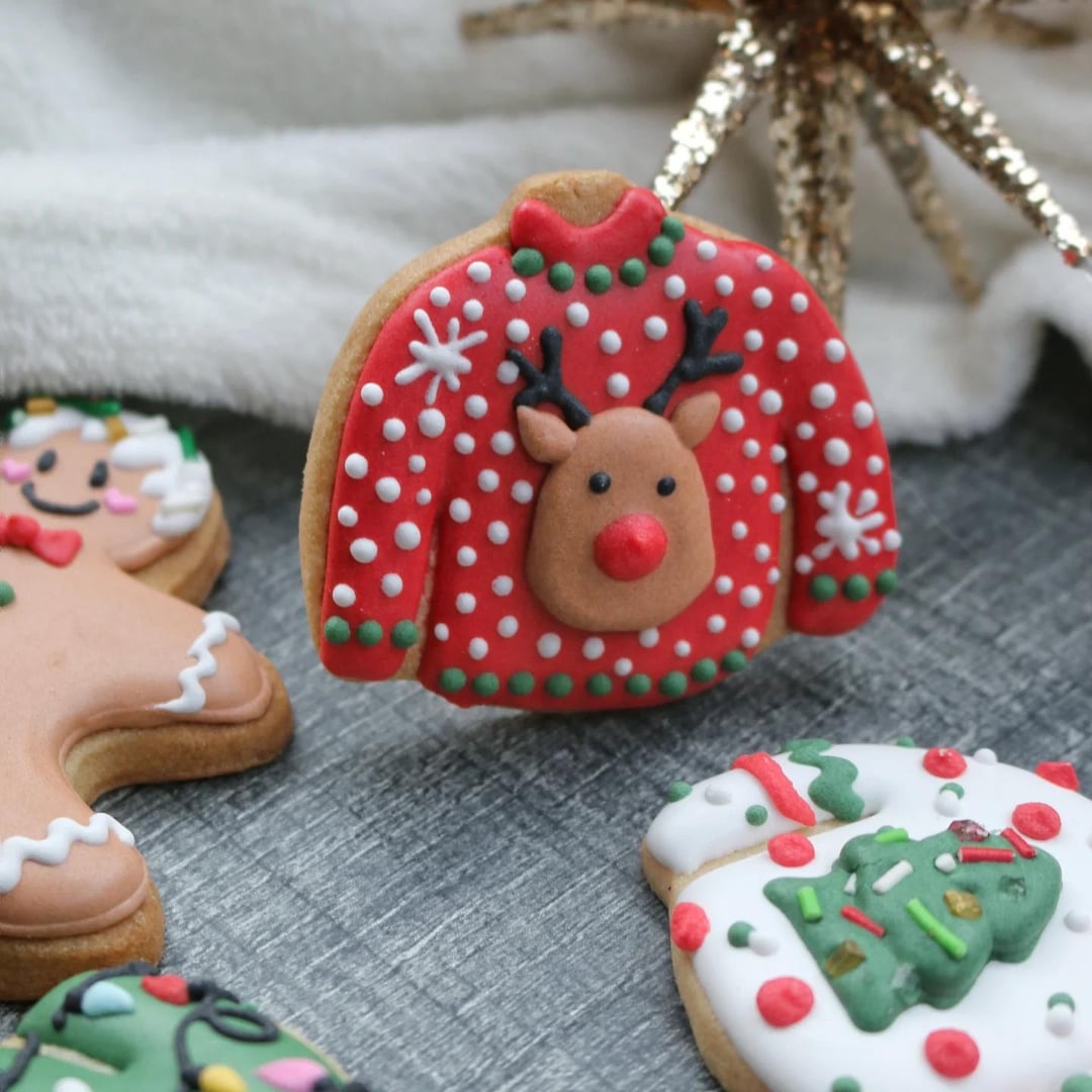 The reindeer on the sweater- “chefs kiss”. Is it a transfer or did you pipe it on?