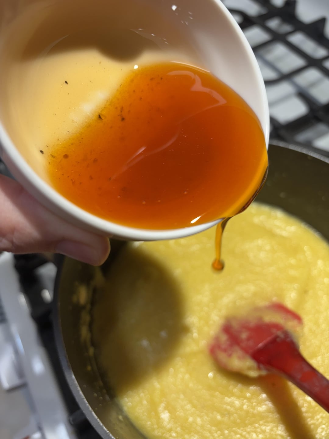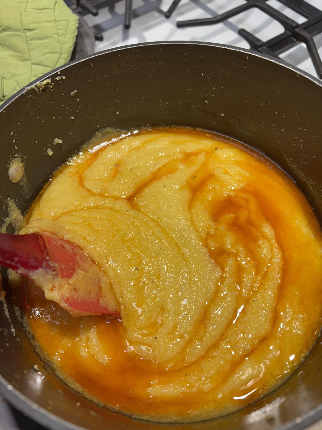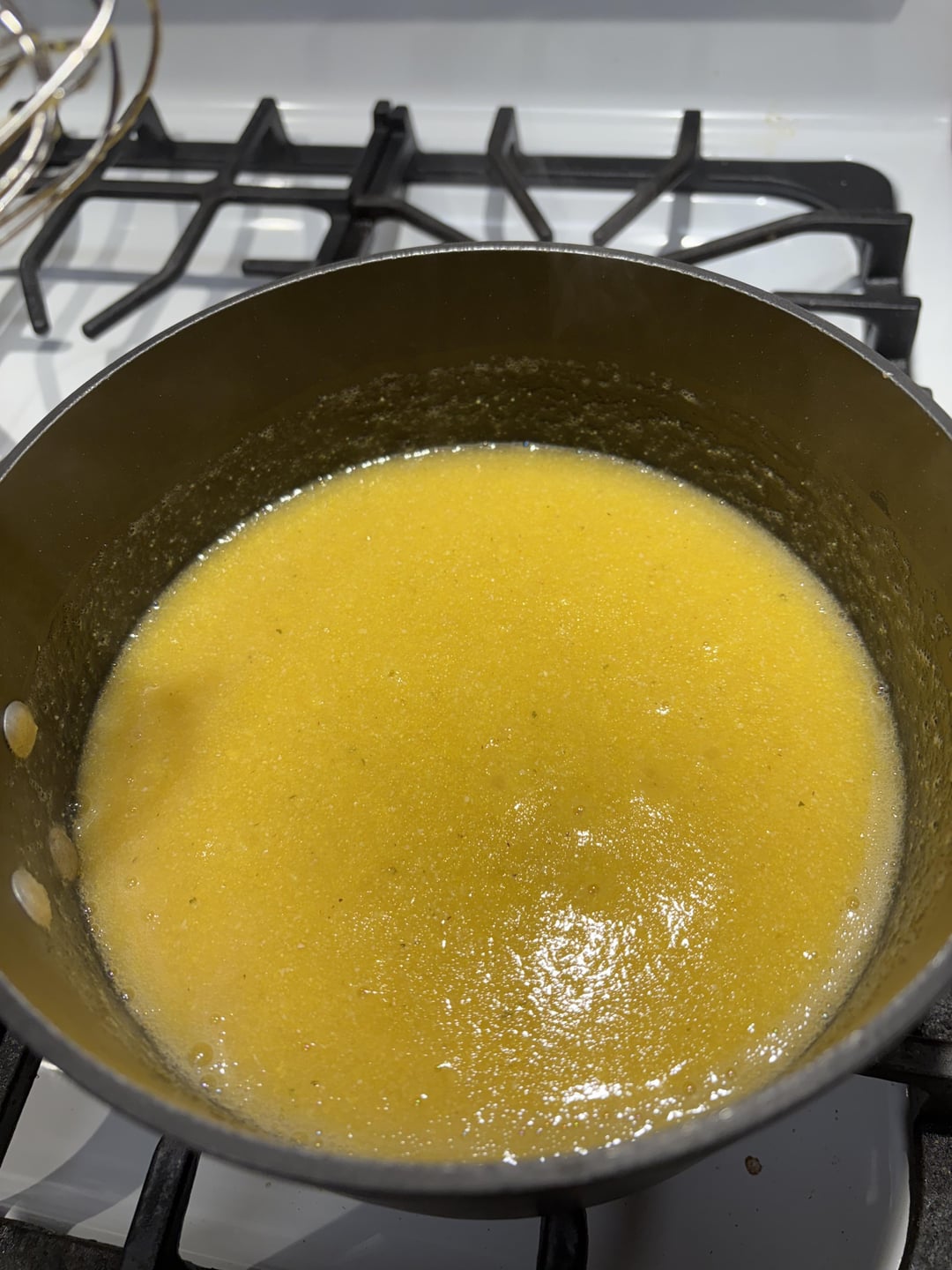 Then it’s just about letting the polenta cook and not stirring it too much. Polenta is very forgiving, and it’s homey, so don’t fuss with it, y’all!
