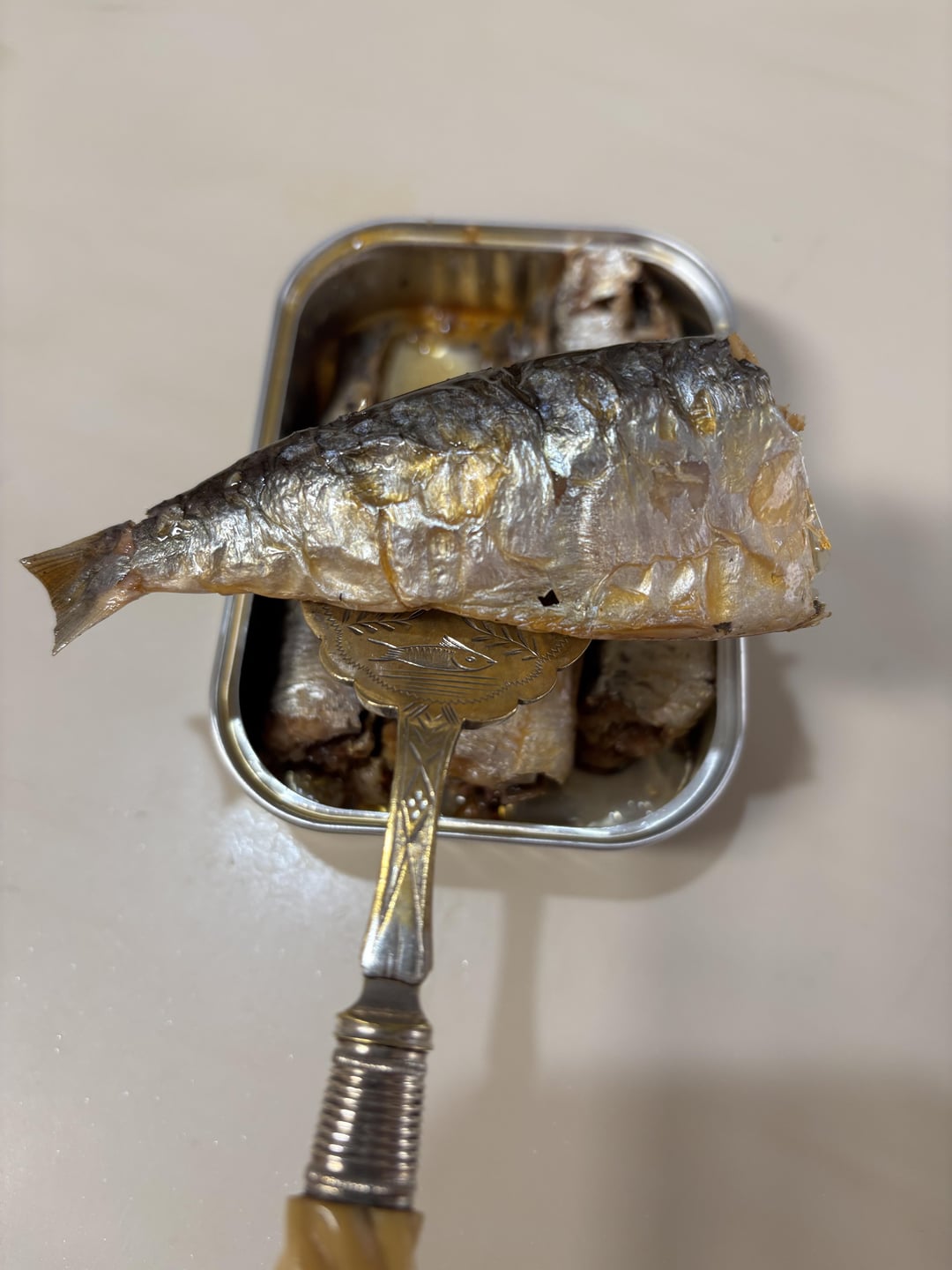 But how was the fish? SUBLIME. Everything I expect from French sardines: beautiful whole fish with intact skin, firm and not mushy flesh, delightful saltiness, and of course amazing lobster-infused bright red tin oil.