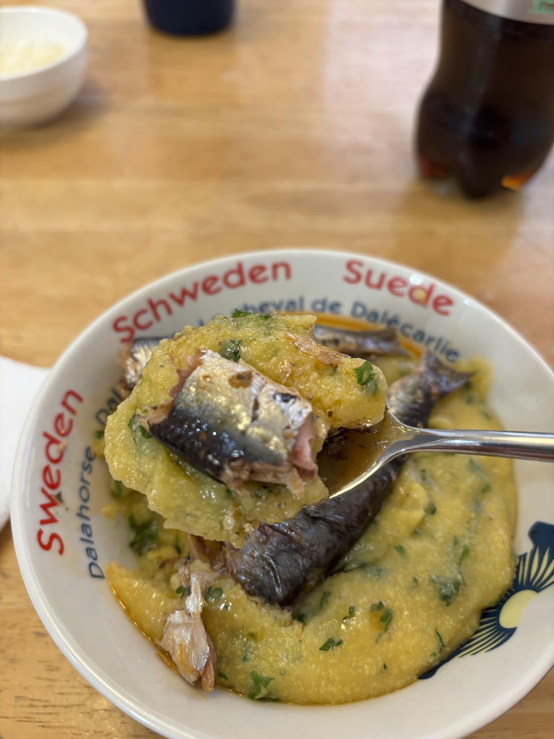 (14) The bite – smooth polenta and delicate flavorful sardines are a match made in heaven. Perfect on a cold day.
