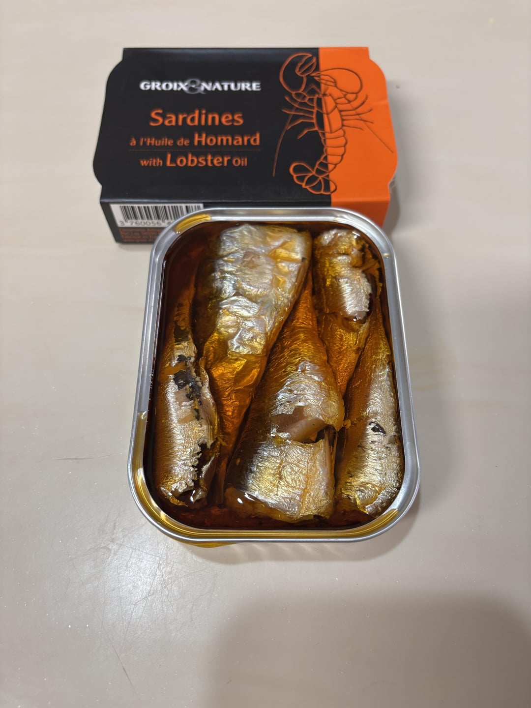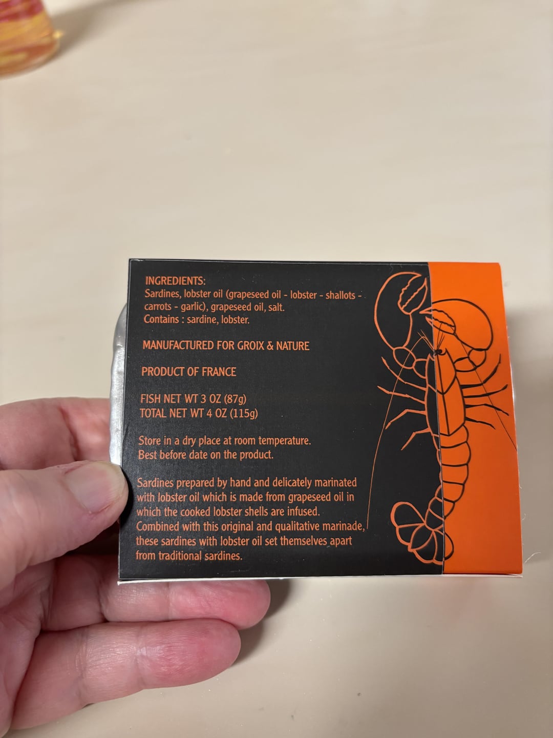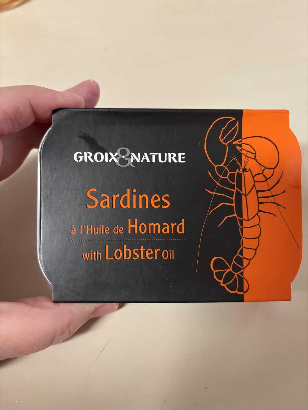 The tin oil is so delicious that you can buy it separately from Groix & Nature – RTG also carried this tin and the bottled oil. It has a rich luxurious lobster flavor that works perfectly with the sardines.