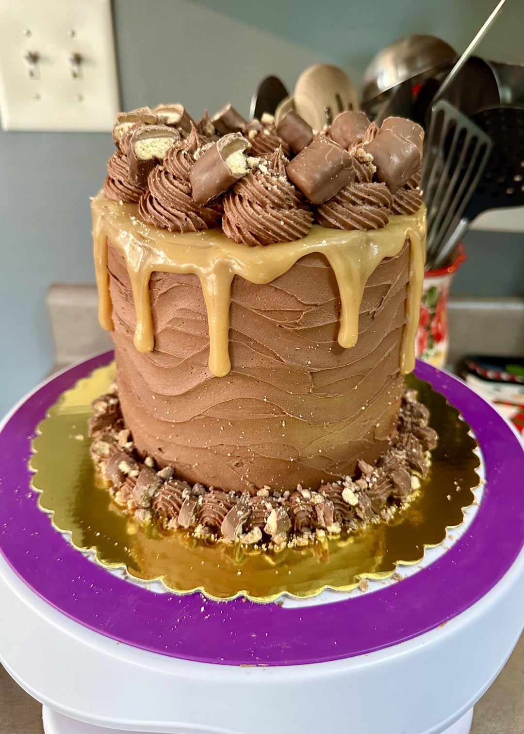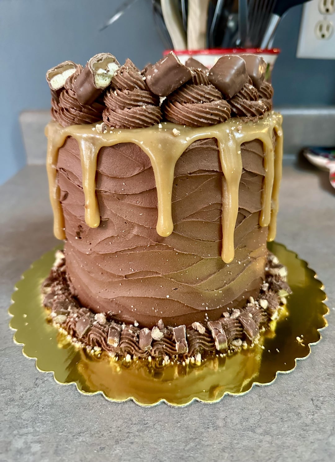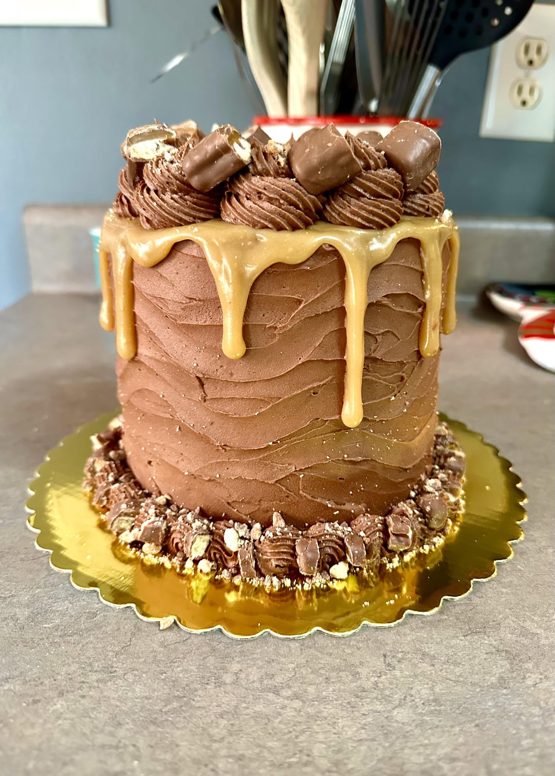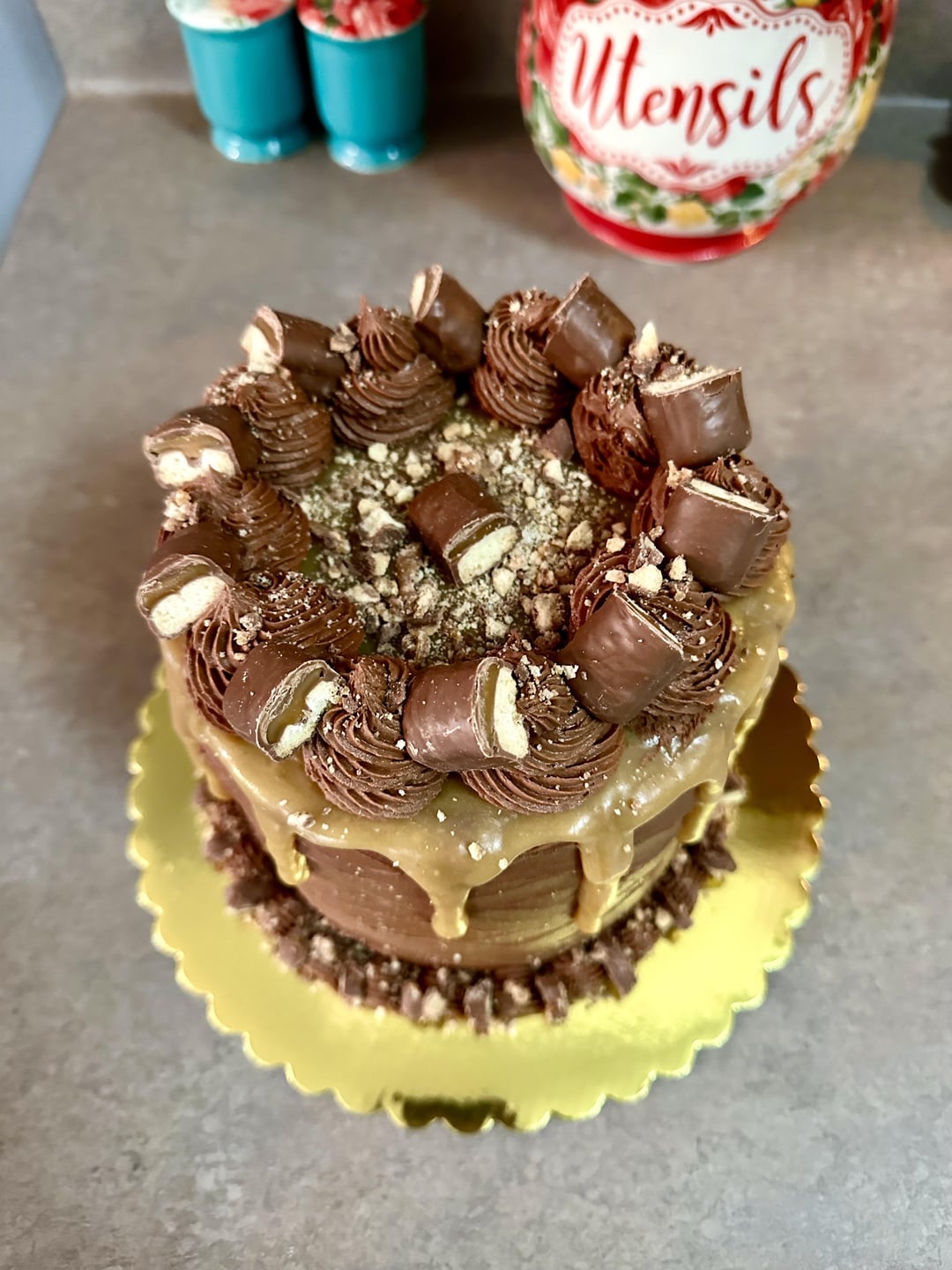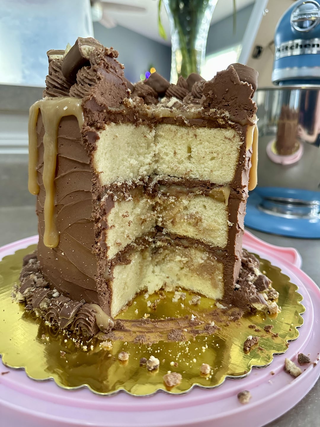 Vanilla cake with chocolate buttercream and homemade caramel 🙂