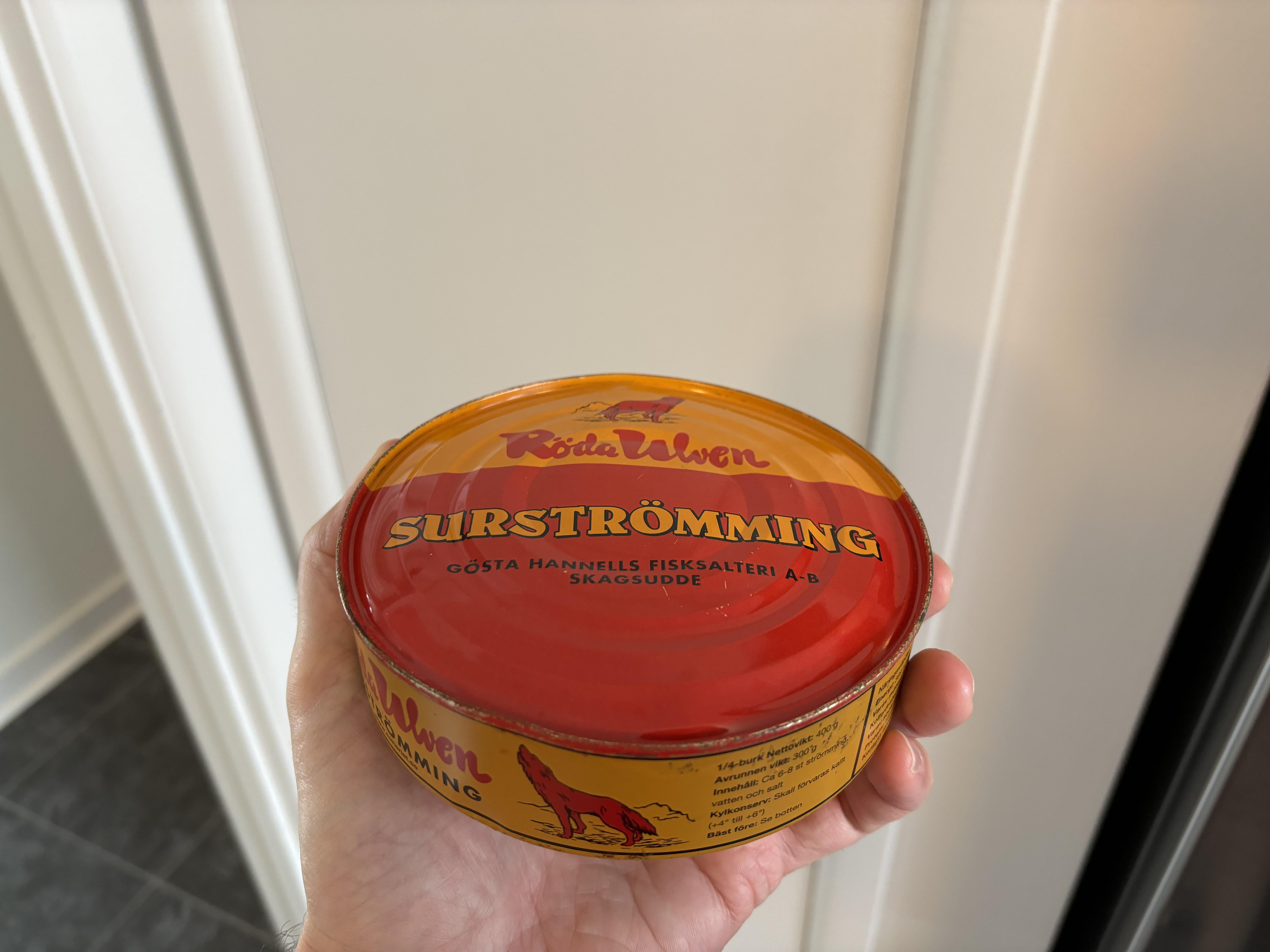 Sometime back in the 90s, I was walking around the Ballard area of Seattle which, back then, was known for the people of Scandinavian ancestry who lived there, and lots of stores catering to them. I was browsing a one of those stores, looking at their canned fish when I spotted a swollen can like this one. Not knowing what it was, I “helpfully” brought it up to the counter and told them to throw it away before they accidentally killed someone. Many years later, I realized what it had been.