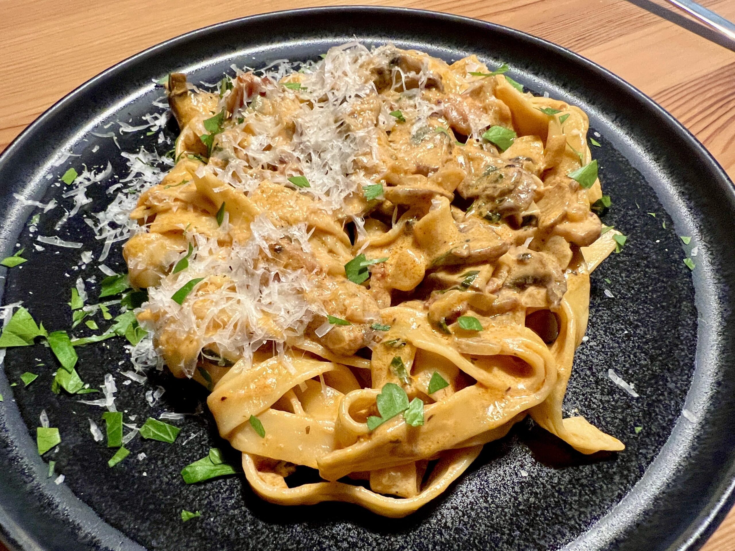 I can’t plate long noodles to make them visually appealing. Doesn’t matter! These were extra tasty.Tagliatelle in a creamy mushroom sauce. by hansebart 1 Comment PetroniusKing 1 year ago I think it’s a nicely composed picture employing the Japanese concept of wabi sabi 🤤👍😊Write A CommentYou must be logged in to post a comment.