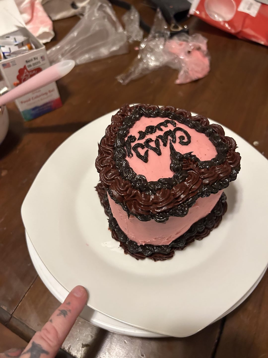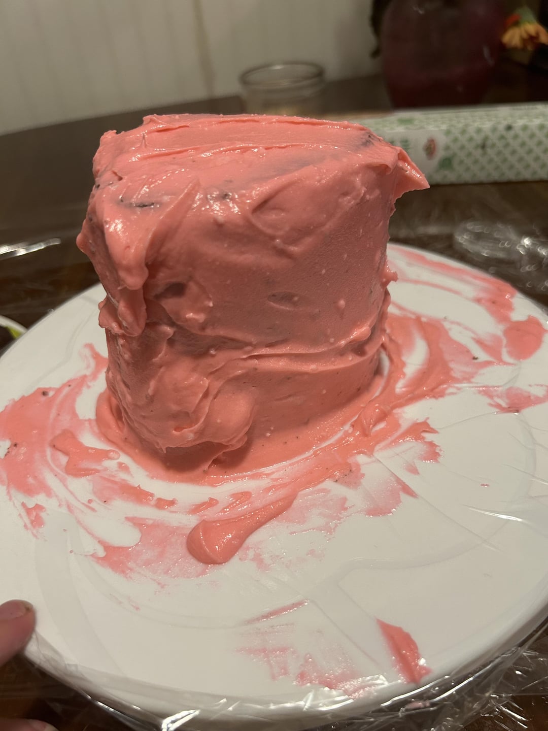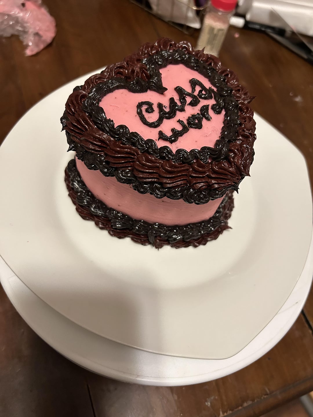 My 2nd attempt at using homemade buttercream to decorate a tiered heard cake. It’s not great, but at least it’s better than the 1st try lol