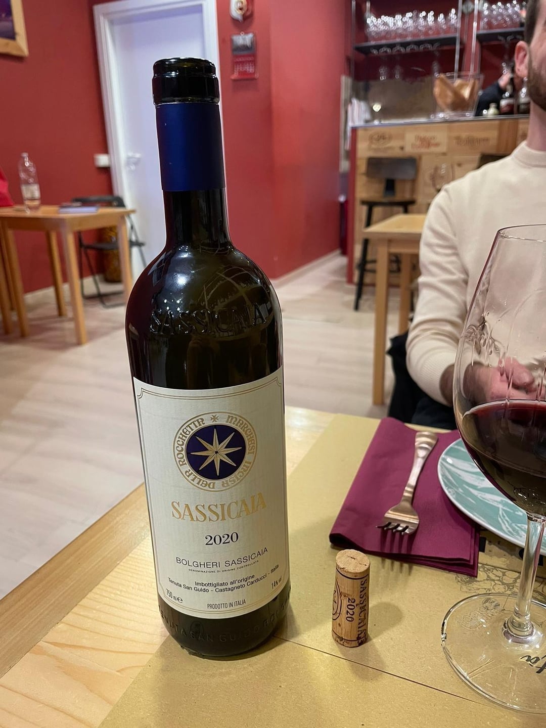 So, i was with my girlfriend and we got this wine by the glass in a local wineshop during their sassicaia event. It was been open for 3 hours, recorked and poured.