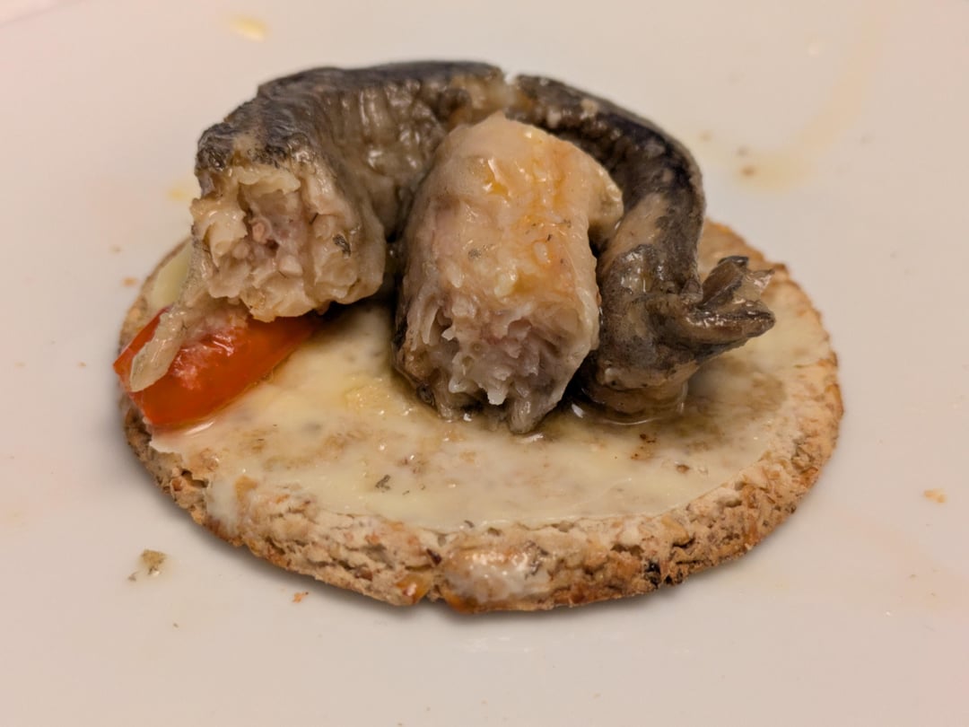 As usual, the photography is awful, sorry about that. I picked these up on a trip to Portugal many years ago, and have put off eating them until now; partly because i thought i should save them for a special occasion, and partly because i was a bit apprehensive (i thought they were baby eels, but they’re just small eels). Anyway, best before end 2024 so i cracked the can.