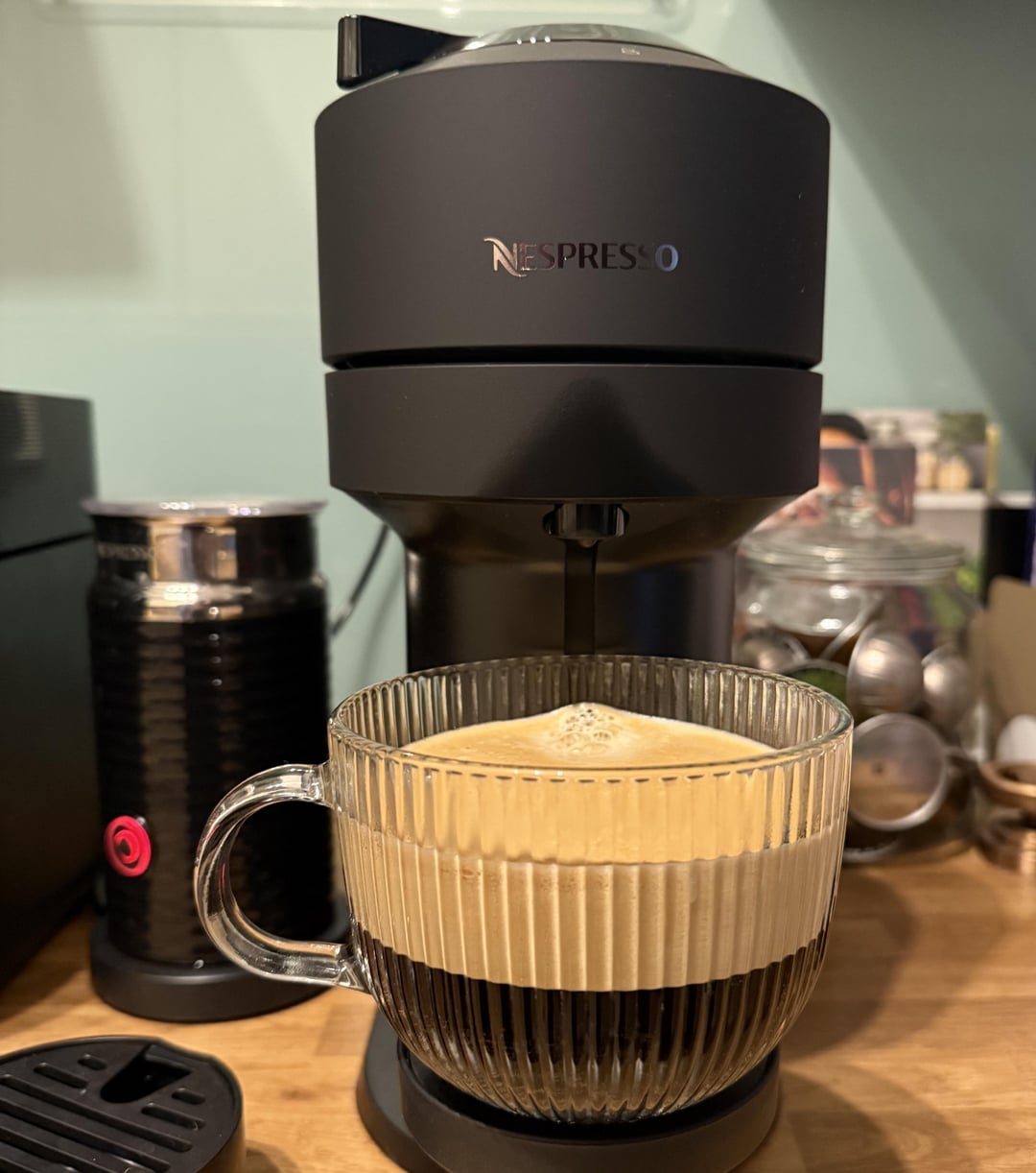 PS: excuse the magazines below the POP machine, I had a nicer black box which I ruined with the coffee spill incident. I was going to buy the Nespresso drawer but I bought the Vertuo Next instead to mitigate the need to raise it.