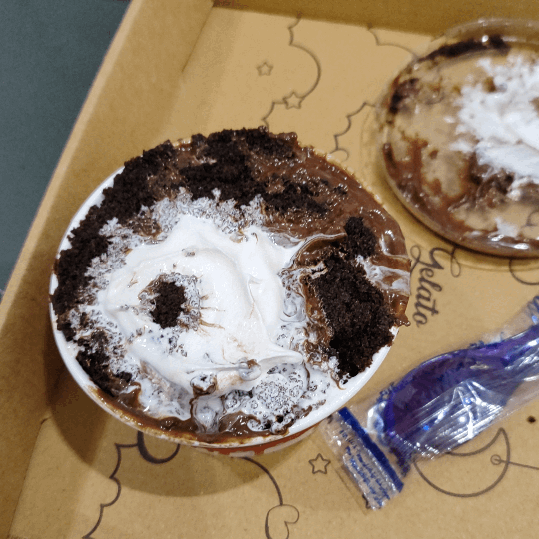 This is a semi-famous ice cream shop in my country yet they don't provide any calorie estimation on their website. This pint is consisted of Gelato ice cream, Nutella and Pieces of brownies according to the website but the measurements are not mentioned.