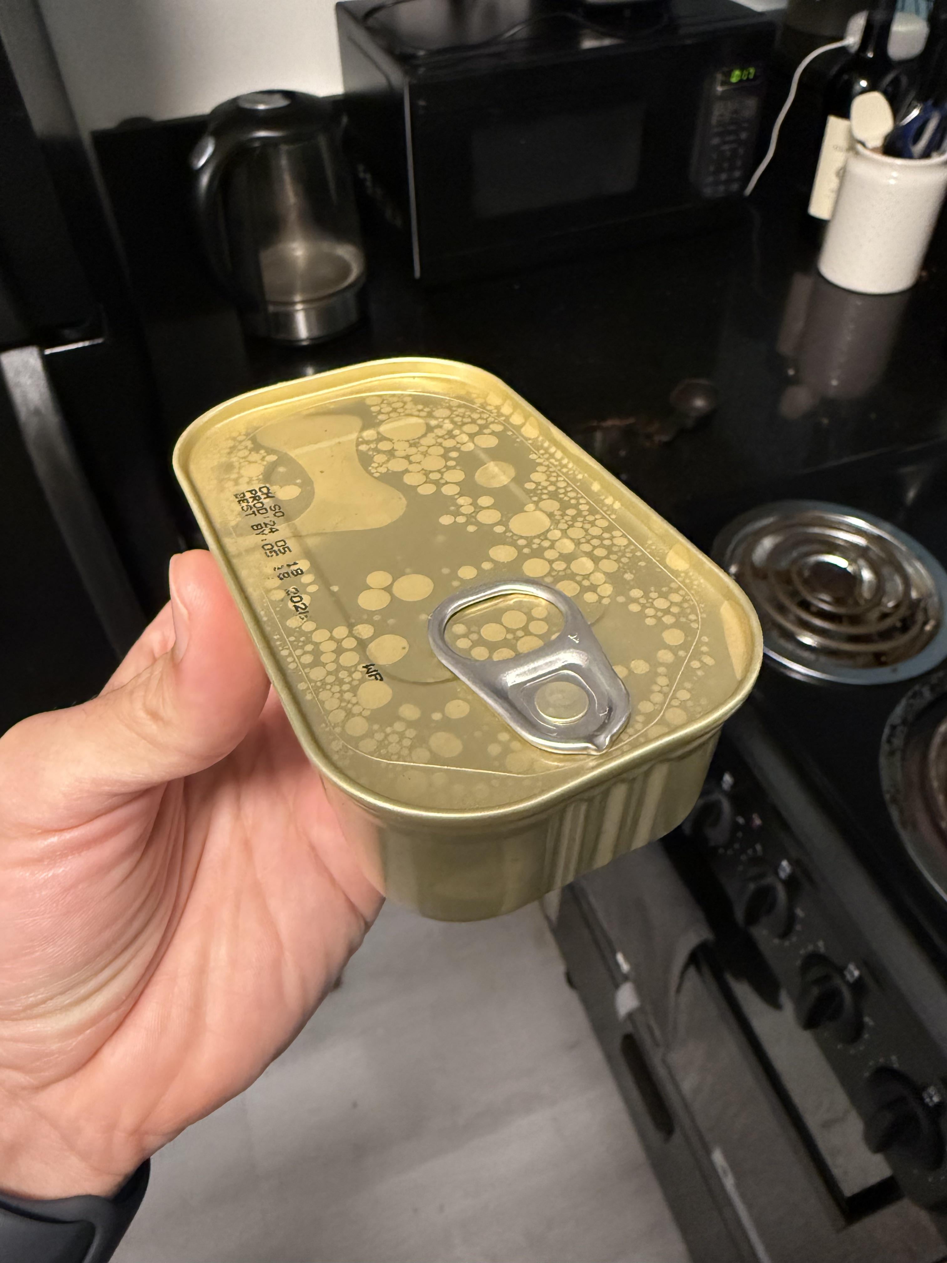 I’ve had several KO sardines with water spots like that. They’re not an issue.