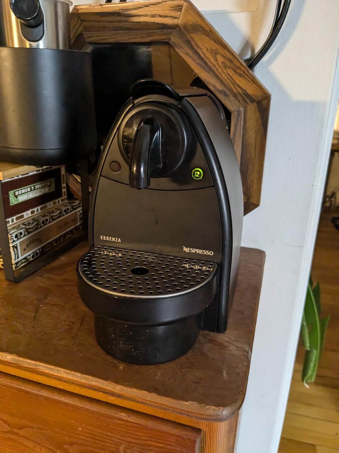I've wanted a Nespresso machine for a long time but it want in my budget- but just yesterday I thrifted this Nespresso Esenzza C91 for just $4.50 and it works perfectly!