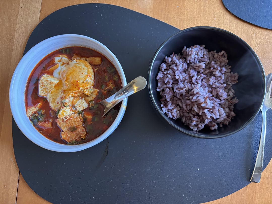 It’s very spicy and quite hearty too. Served it alongside some Korean black rice. I’m happy with how it turned out, especially considering this is my first time using a clay pot!