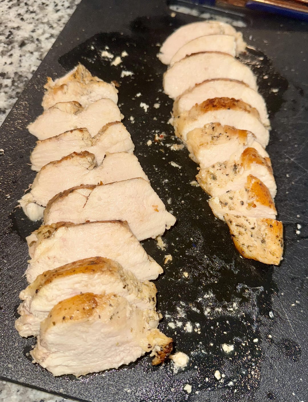I’d rate it 6 out of 10! Overall, I’m happy with the total ease of use and the juiciness! But, the texture was a little tougher than I’d like so I think I’ll bring the temp down a little next time for a softer breast. I also don’t love how my marinade tasted so I’ll experiment with that more. But these will be perfect for Caesar salads! Next up: bone-in ribeye later tonight. Fingers crossed!