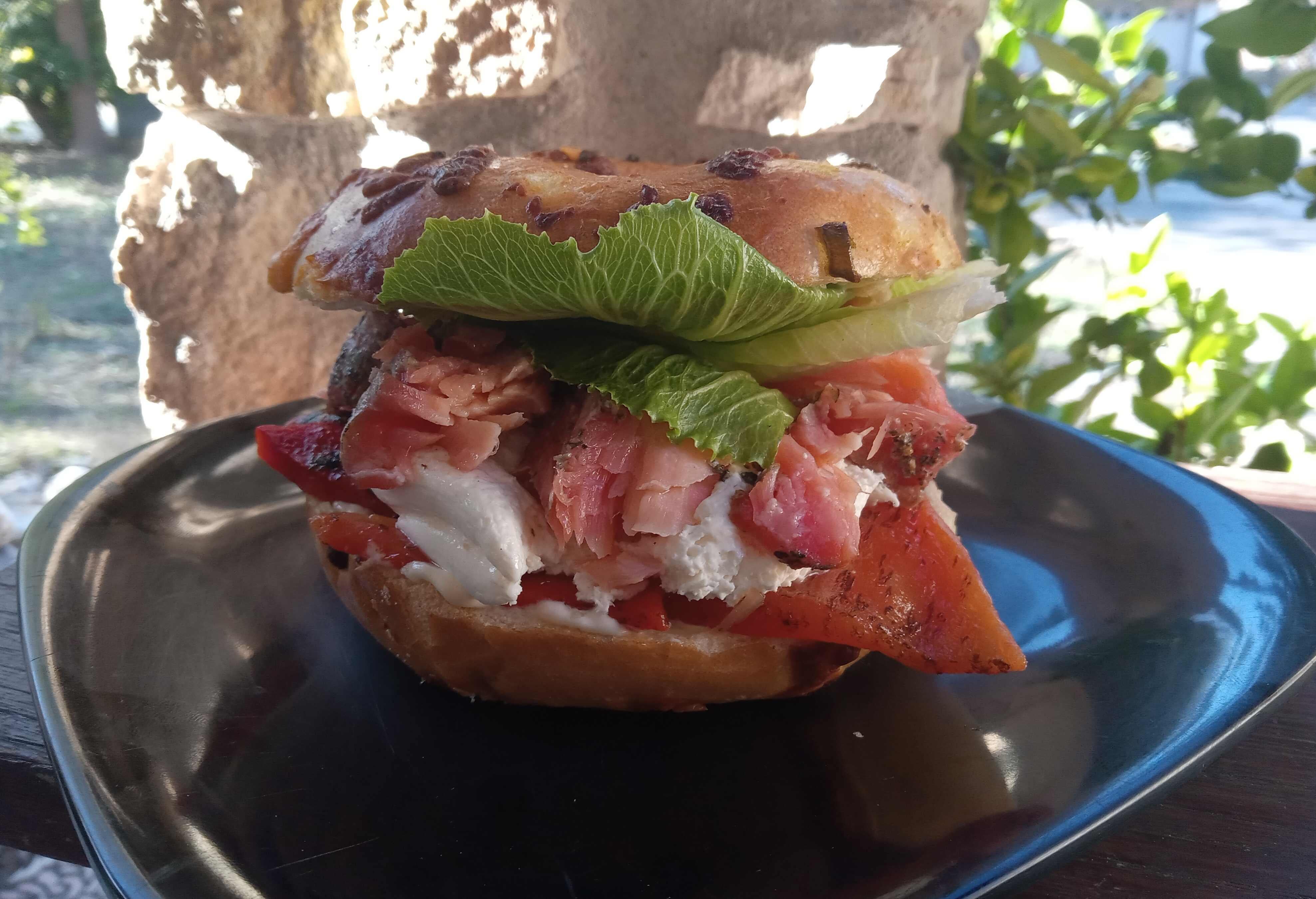 Home-cured and warm-smoked salmon (cured with added beet juice), whipped cream cheese, and roasted red peppers on a lightly-toasted cheese bagel. by SpicyBeefChowFun 1 Comment matt_604 11 months ago Write A CommentYou must be logged in to post a comment.