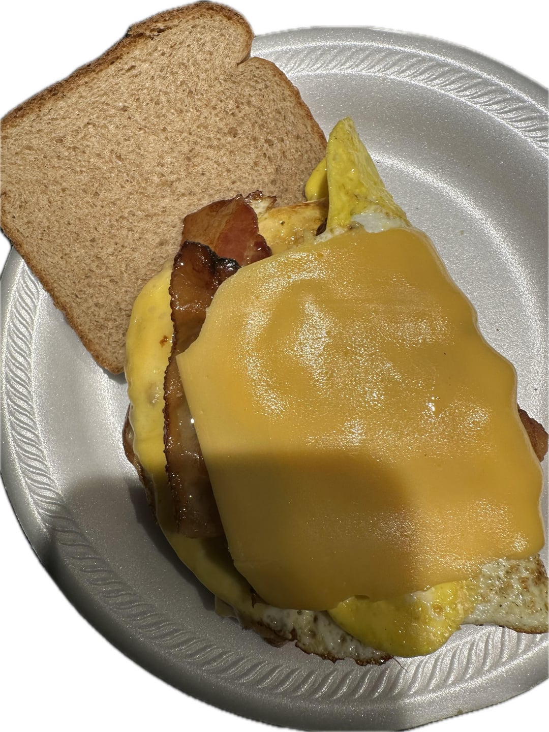 The bacon egg and cheese looks so good, but then it’s just on some dry wheat bread. Toasted white bread with mayo, even a bagel would kick this up for me.