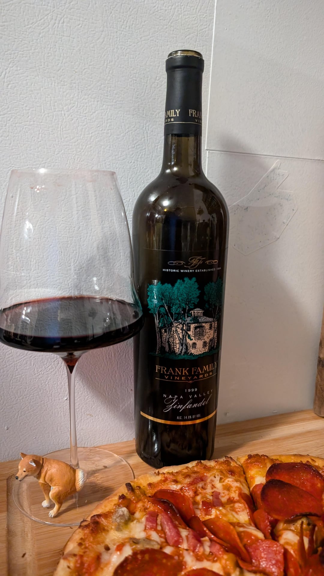 Taking a sip, you’ll notice a burst of sweet and tart boysenberry and dark cherry, followed by rich plum flavors. There’s a slight earthiness, maybe like an under ripe olive? Not mushroom or moss, something, and a tiny bit of licorice in the background that faded. A peppery finish brings a nice bit of kick to it, that Zin kick was still there, and at first there’s a bit of heat, but over a couple hours in a decanter, it really settles down. As it opens up, those stone fruit flavors shine, and the wine becomes more balanced and enjoyable the longer you spend with it. Went super great with the pizza