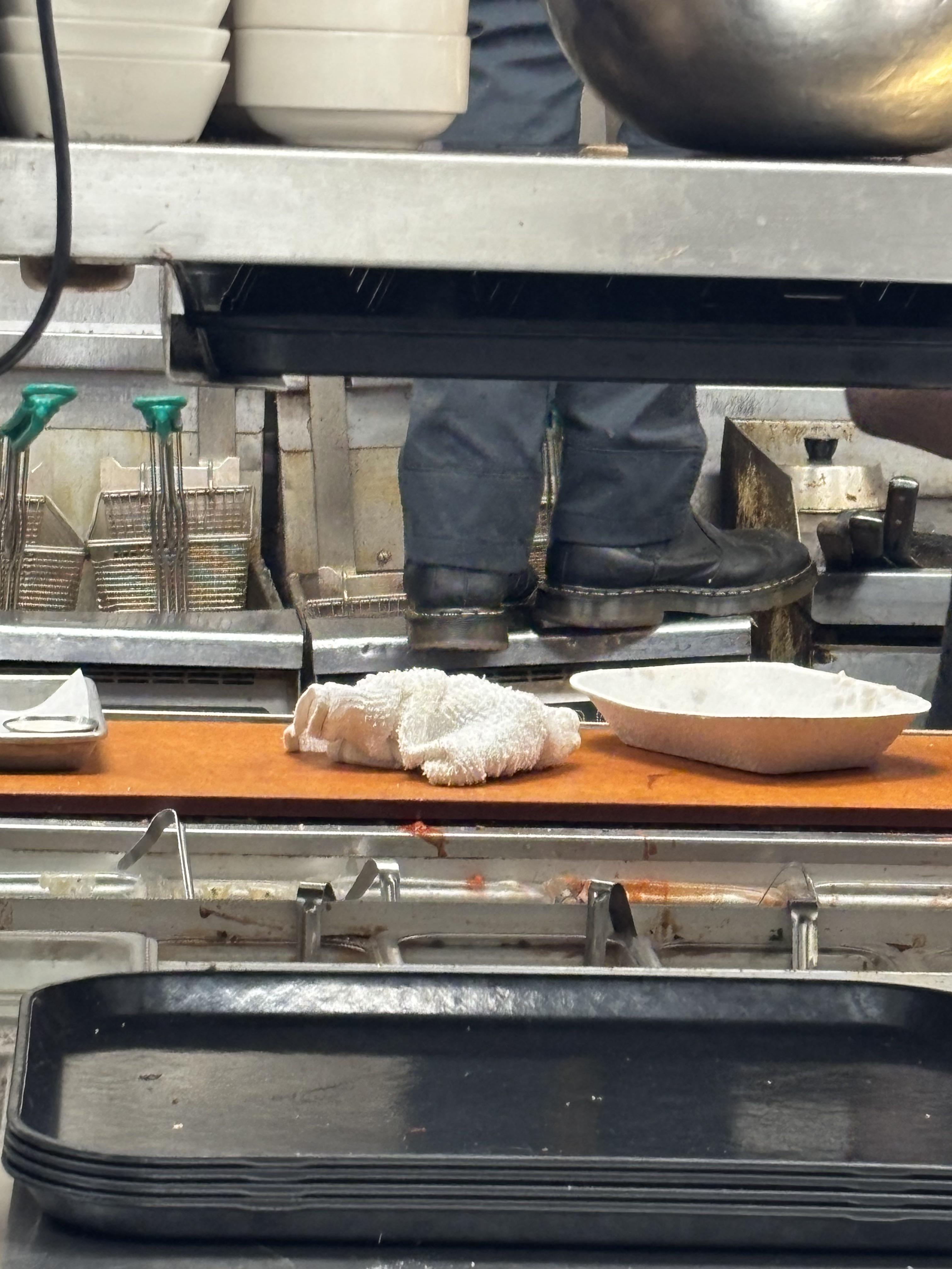 Whoo boy, my time to shine! Had a mini Eminem wanna be trying to prove his worth. Decided it was a good idea to put a sheet tray over the fryer to grab the vents after I told him to not worry about it as one dude was like 6’8 and just reaches up there gets it. Well the pan slipped and we heard the scream. His shoe melted to his foot.